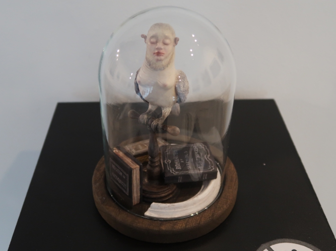 Roksana Karczewska śmiało sięga do sztuki dawnej i źródeł europejskiej kultury. W stylu renesansowo-barokowym portretuje dziewczynę w nakryciu głowy kobiety-kota. Pokazuje poza tym zamkniętą pod szklanym kloszem wraz z miniaturkami starych ksiąg figurkę mitologicznej harpii, a także ujęty w cierniowy okrąg obrazek z dłonią trzymającą biblijne jabłko.
