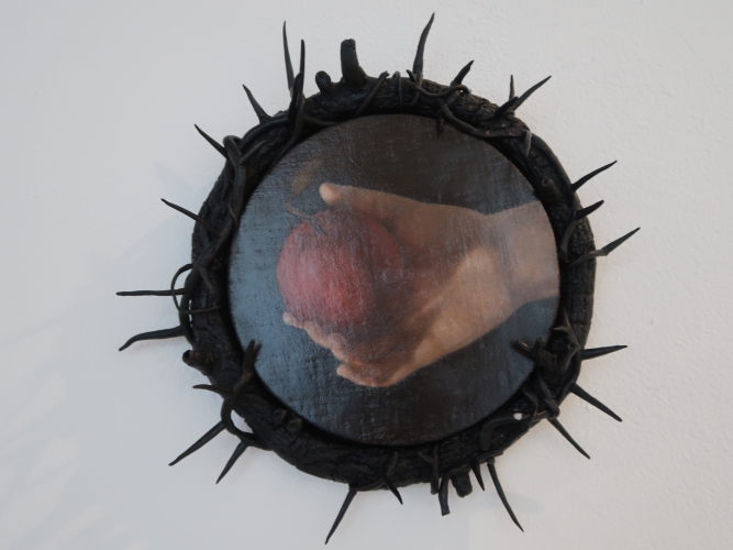 Przeważa malarstwo, ale są też reliefy czy ceramiczne rzeźby. Oczywiście prac nie zestawiono przypadkowo, ale w taki sposób, że jedna zdaje się wynikać z drugiej, wspólnie tworząc nową kompozycyjną jakość.