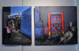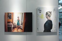 Moim zdaniem jeszcze za mało mówi się o Paulinie Zalewskiej, której obrazy zwracały uwagę już na poprzednim Salonie. Te, które prezentuje teraz, są jeszcze lepsze. Łączenie fragmentów czarno-białych i wielobarwnych daje efekt podkolorowanego starego zdjęcia. Wspaniałe są malowane przez Zalewską młode kobiety. Świetny warsztat (proszę zwrócić uwagę choćby na sposób namalowania spódnicy dziewczyny na obrazie „W Urbino”), duży talent!