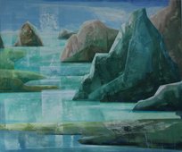 Katarzyna Gołębiowska odważnie maluje obrazy abstrakcyjne, mimo sporych rozmiarów bardzo delikatne. Medytacyjne.