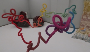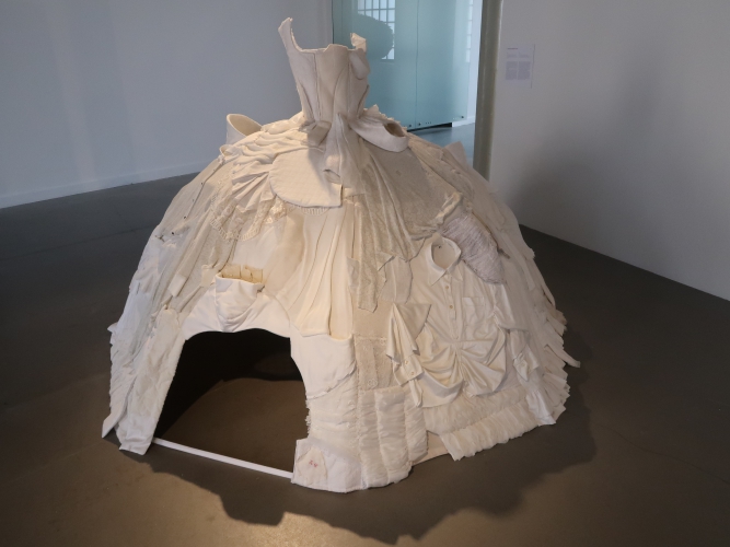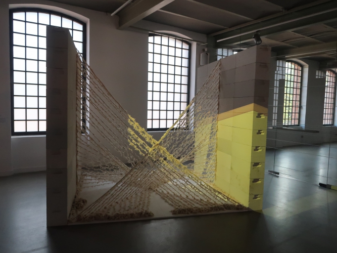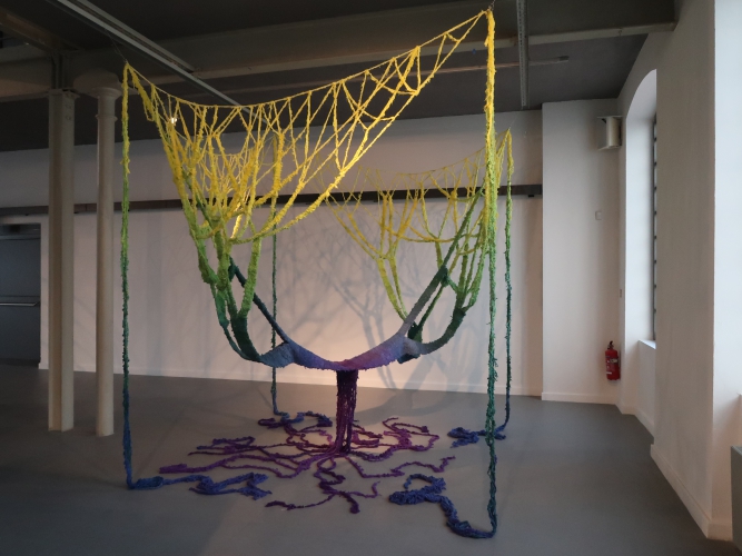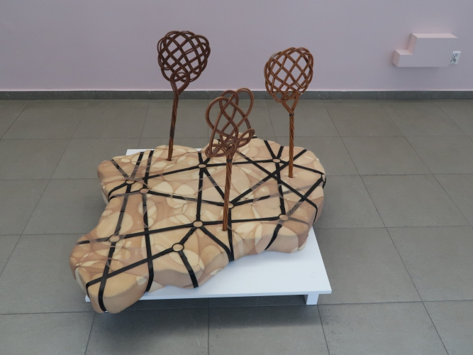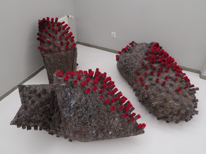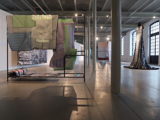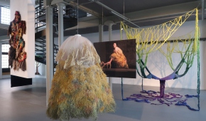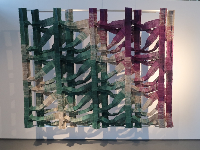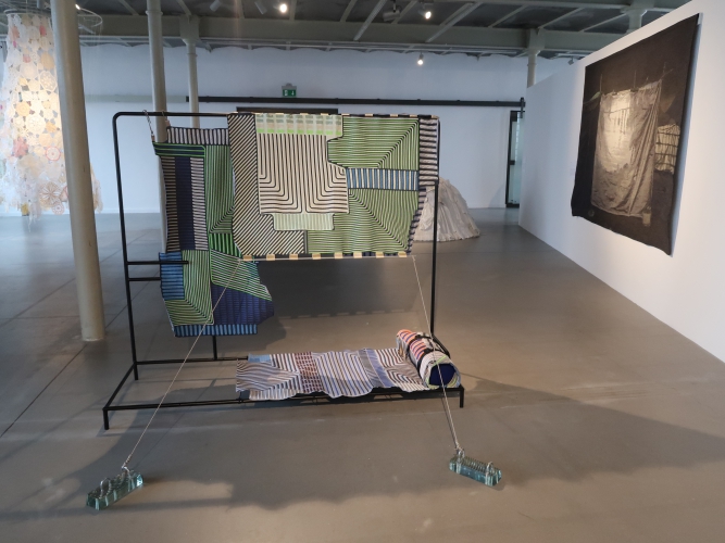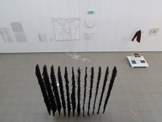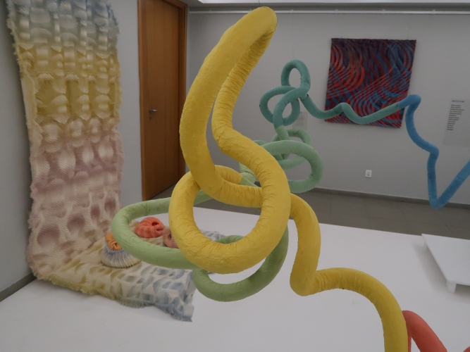 Zwycięska praca nie jest tu jedyną wykonaną zgodnie z tradycyjnymi prawidłami, ale na wystawie przeważają obiekty i instalacje wykraczające poza zwyczajowe pojęcie tkaniny. Często przestrzenne, rzeźbiarskie albo bez grama klasycznego włókna. To żadna nowość – trend rozszerzania granic tkaniny ma już długą tradycję. Plastik, metal, szkło, drut, sztuczne futro, papier – to tworzywa dzisiejszej tkaniny. A ci artyści, którzy sięgają po włóczkę, przeplot i przyścienną, płaską formę, za pomocą tradycyjnej metody mówią o współczesności, odwołują się do jej zagadnień i wizualnych kodów. Płaskie tkaniny wykorzystywane bywają też do budowania przestrzennych konstrukcji, jak u Anny Resei z Austrii w pracy „tele-nomadyczny”. Tkanina żakardowa o reliefowych, geometrycznych wzorach wynikających z kształtu linii już sama w sobie jest interesującą propozycją artystyczną, a twórczyni dodatkowo sugeruje budowanie z niej wodoodpornego schronienia, odnosząc się do koczowniczego stylu życia dawniej i dziś, do trwania w ciągłym ruchu, podczas gdy według niej ludzie powinni pozostawać we wzajemnym połączeniu.
