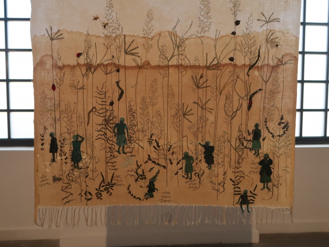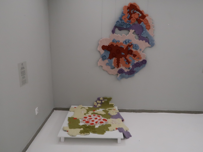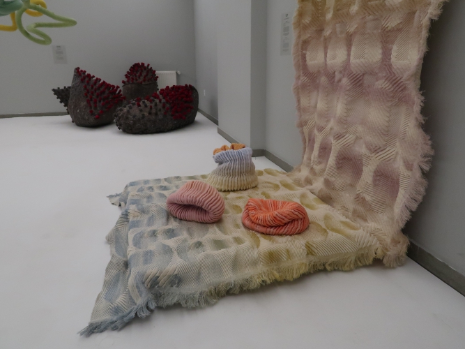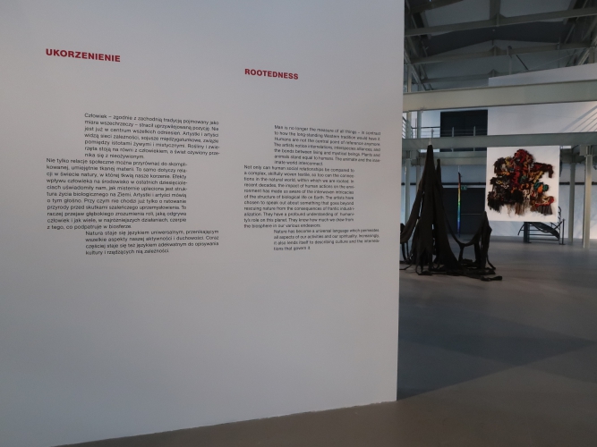 Wiele dzieł czerpie inspiracje ze świata przyrody – szczególnie z procesu rozrastania się roślinności, porostów, z sieciowania korzeni drzew i grzybni, z kształtu i zastosowania kokonów, z funkcji kory, z morskich roślin. Bardzo ciekawe są prace przyporządkowane do rozdziału „horyzonty rzeczywistości” – mówią m.in. o ucyfrowieniu świata, które coraz bardziej pozbawia człowieka sprawczości, aktywnego uczestnictwa, wolności, możliwości podejmowania decyzji. Które zastępuje nam wielowiekowe wartości. W „Et in Arcadia Ego” Moniki Gromadzińskiej, czarno-białym obrazie utkanym z wełny i akrylu, widzimy powielony, rozpikselowany wizerunek Czarnej Madonny – wzór rozjeżdża się jak w zawierającym błędy cyfrowym zapisie na monitorze, z tzw. martwymi i gorącymi pikselami. Rozłażącą się cyfrową rzeczywistość znajdziemy też na gobelinie Katji Felle ze Słowenii („Stop-Szyj-Reset”, Brązowy Medal), która poprzez „cyfrowy” błąd w przekazie wizualnej informacji wskazuje m.in. na błąd w komunikacji międzypokoleniowej: osoby starsze nie pojmują nowych technologii, młode nie są zainteresowane starymi rzemieślniczymi technikami; nowe technologie przyspieszają komunikację, oszczędzając nasz czas, ale paradoksalnie zabierają nam jednocześnie coraz więcej wolnych chwil.