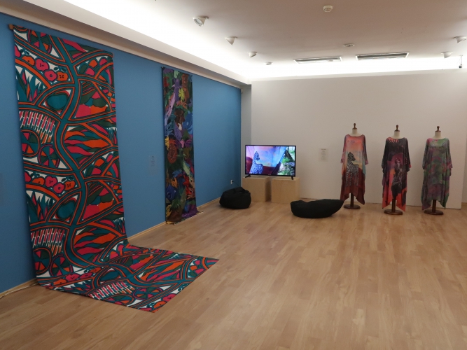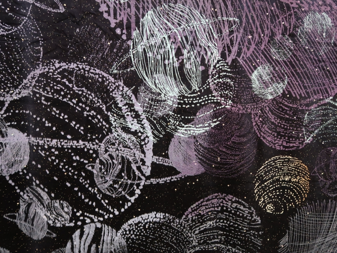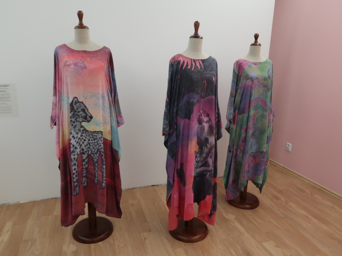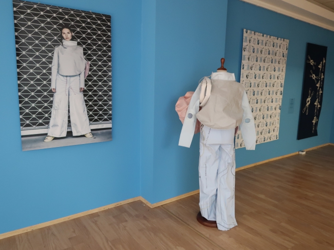 Jednak na wystawie YTAT znajdziemy wiele prac godnych uwagi (także wśród tych użytkowych). Jest tu np. ubiór z samochodowych poduszek powietrznych ze złomowiska jako odpowiedź na nadmiar odpadów (Lisette Lanoja z Estonii), jest tkana, wielkoformatowa laurka dla zapylaczy z dwiema maleńkimi haftowanymi osami na dużej żółtej płaszczyźnie (Kamila Lewandowska z ASP w Łodzi), jest instalacja będąca uchwyceniem chwili, śladem po performensie – fragmenty zdjęć wydrukowane na tkaninie oraz rozbity i rozsypany gips (Urška Medved ze Słowenii). Intrygujące formy o podobnej wymowie stworzyli Miłosz Jon z Akademii Sztuki w Szczecinie (dające poczucie bezpieczeństwa „opakowanie na człowieka” w formie miękkiej rzeźby z zastosowaniem druku… rdzą) i Diana Pemberton z Anglii (zapewniający prywatność „ubiór” z filcu o raczej nietypowym dizajnie). Martyna Łuszczyńska z ASP w Łodzi pokazuje czarno-białe drukowane tkaniny, które mogą funkcjonować jako ozdoba nowoczesnego wnętrza, ale sugerują głębszą treść: poszczególne formy to osobne „kosmosy” różnych sposobów postrzegania rzeczywistości.
