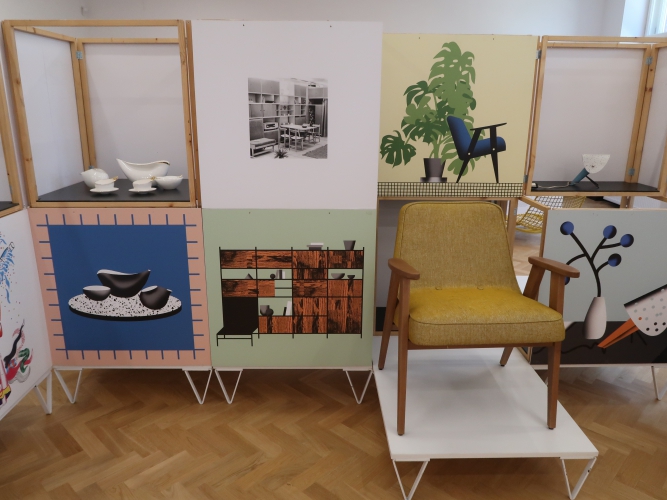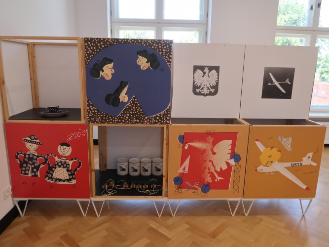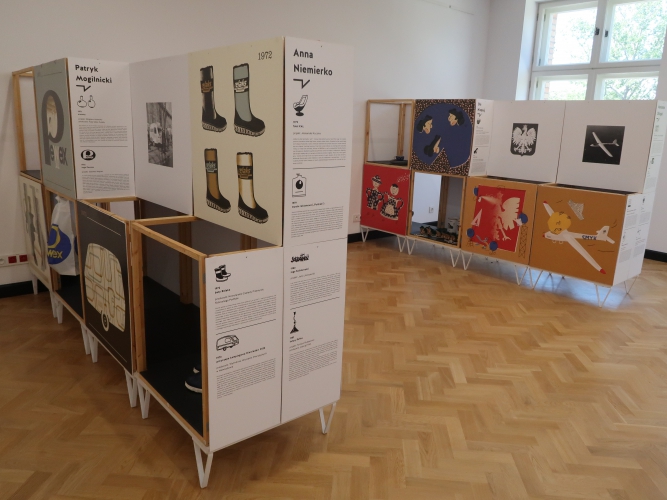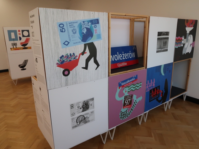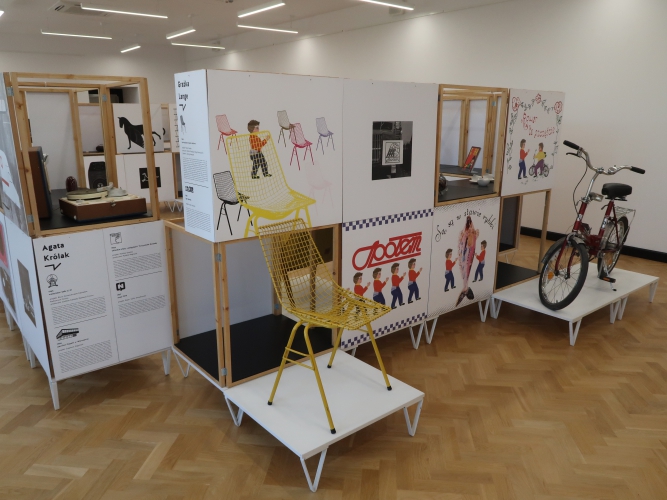 Zróżnicowane, kolorowe i czarno-białe ilustracje, proste meblarsko-architektoniczne „gabloty”, no i sedno wystawy – design. Wszystko to razem robi świetne wrażenie; nie ma odczucia nadmiaru, chaosu, jest porządek. Sam wybór przedmiotów musiał być problematyczny – bo fotel RM58 Romana Modzelewskiego, logotyp Solidarności, herb Polski, skuter Osa czy znak CPN-u to oczywistości, ale co z mniej efektownymi obiektami? Wydaje się, że wskazaniem była tu często – poza dobrą projektową robotą – popularność produktu. Stąd m.in. buty Relax, wiatraczek Zefir, gumowe kółko Ringo. Ale też znak Polski Walczącej – nie miałam świadomości, że rozpisano na niego konkurs i znana wszystkim Polakom specyficzna kotwica, dziś często nadużywana, jest jego efektem (projekt: Anna Smoleńska, 1942). To był oficjalny, zatwierdzony przez Komendę Główną AK – a zatem jedyny przewidziany do użytku – symbol, nie żadna oddolna, spontaniczna twórczość. Takie interesujące fakty można poznać właśnie z opisów towarzyszących obiektom.
