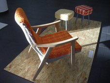 (szkoda, że wykonany niestarannie) i dwa stołki przerobione ze