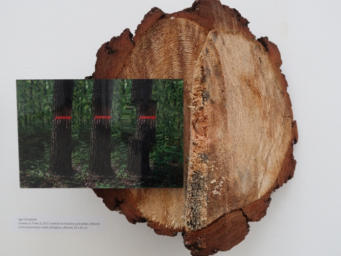 Igor Omulecki przetwarza cyfrowo krajobraz, nadając mu cechy kolażu albo obrazu malarskiego – smugi koloru przypominają ścieżki pędzla. Za pomocą komputera oznacza pnie drzew czerwonymi liniami, które niekiedy wychodzą w przestrzeń, a ta również jest przetworzona, zniekształcona przez zwielokrotnienie tła. Wydruk „Drzewa 3” artysta umieścił na kawałku pnia prawdziwego drzewa – jego naturalny zapach kłóci się z technicznym obrazem. Wiesław Michalak fotografuje ranty książek – komputerowo zabarwione zbliżenia kartek papieru tworzą widok niemal abstrakcyjny. Józef Robakowski powiększa cyfrowo swoje maleńkie abstrakcyjne obrazki sprzed lat – i odkrywa w nich coś, czego dotąd nie było widać. Kolory ożywają i stają się niemal świecące, ujawniają się szczegóły: rysy, spękania, zgrubienia, białe plamki, które zaczynają tworzyć fakturę. Cyfrowa konwersja dotyczy też portretowych fotografii wykonanych przed laty przez tego artystę zwykłym ludziom w pełni ich naturalności – Robakowski przekonwertował je na wzory czarno-białych haftów, które zostały zrealizowane przez fachową firmę. Dokonała się zatem podwójna wolta dzieła sztuki.