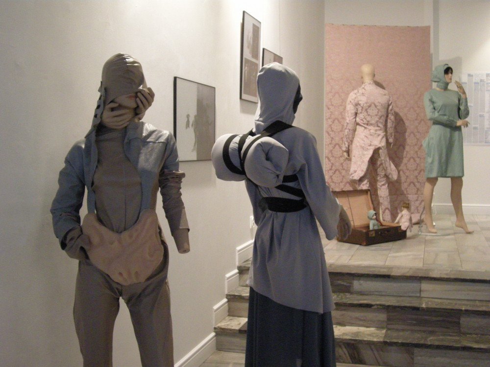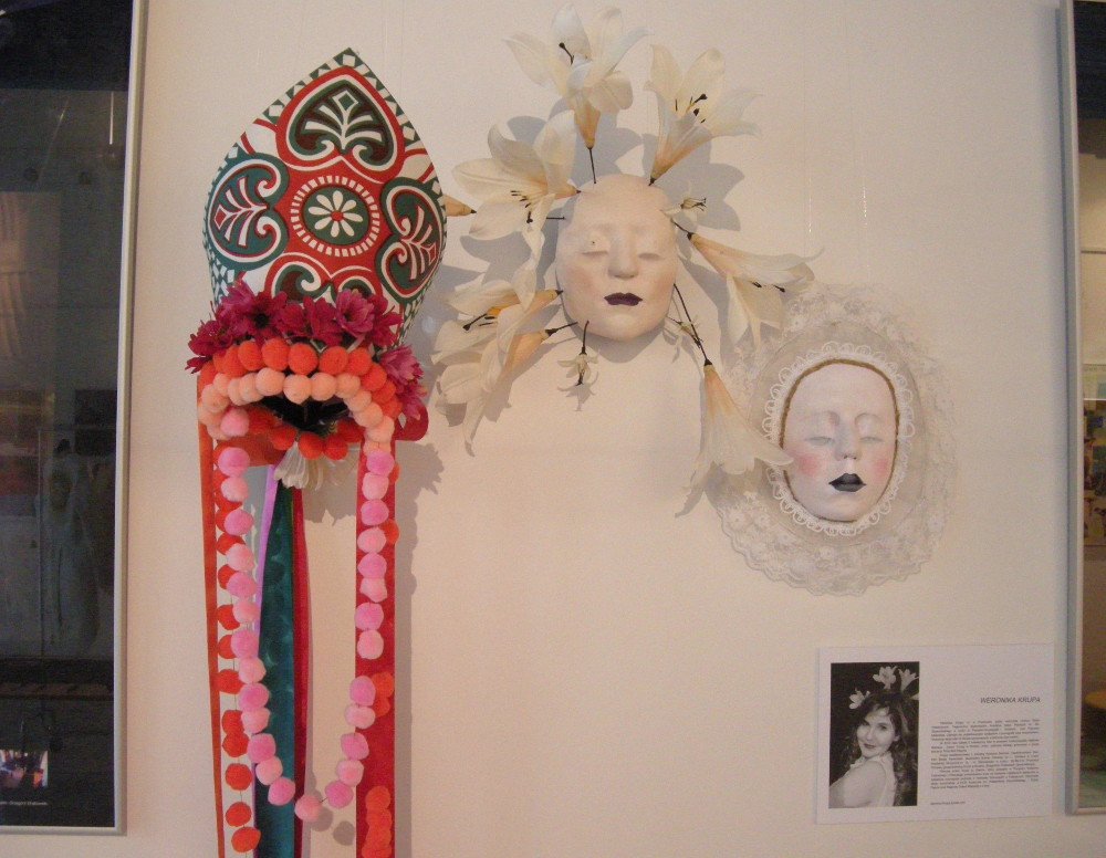 Co można zobaczyć? Zarówno propozycje powstające jako szkolne zadania – np. wizualizacje przeciwstawnych pojęć (życie – śmierć, euforia – przygnębienie, wielość – jedność), jak też efekty tych i innych ćwiczeń w postaci prac dyplomowych czy semestralnych. Czasem projektów, ale często już realizacji – możemy więc zobaczyć kostiumy w pełnej krasie. Choćby Martyny Cierpisz – „W labiryncie sklepów cynamonowych” to tajemnicza postać dziewczynki w czarnej pelerynie i czarnym nakryciu głowy, „Faust” – surowe stroje postaci z ukrytymi twarzami. Julia Kosmynka prezentuje np. długi czarny płaszcz z piórami i nadrukowanymi symbolami – jak dla czarodzieja oraz damsko-męski zestaw kolorowych ubiorów dla postaci nieco zwariowanych, na pewno odważnych (męskie spodnie mają postać patchworka) i ubiory ludzi, którzy walczą o przetrwanie po apokalipsie – przypominające te noszone przez ulicznych włóczęgów: wielowarstwowe, ciemne, takie, których nie żal zniszczyć, do tego zasłonięte twarze i kaptury na głowach. „Karuzela z Madonnami” Weroniki Krupy to kobieta w czarnym trykocie i efektownym nakryciu głowy o kształcie udekorowanego złotymi gwiazdami i czarnymi frędzlami „wachlarza”. Julia Lipińska proponuje kostiumy dla postaci z „Tanga” Mrożka – połączenie dwóch przeciwieństw: elegancji i nonszalancji (frak i krótkie spodenki, suknia i trampki).