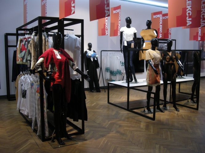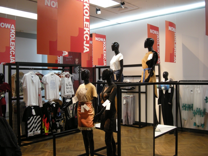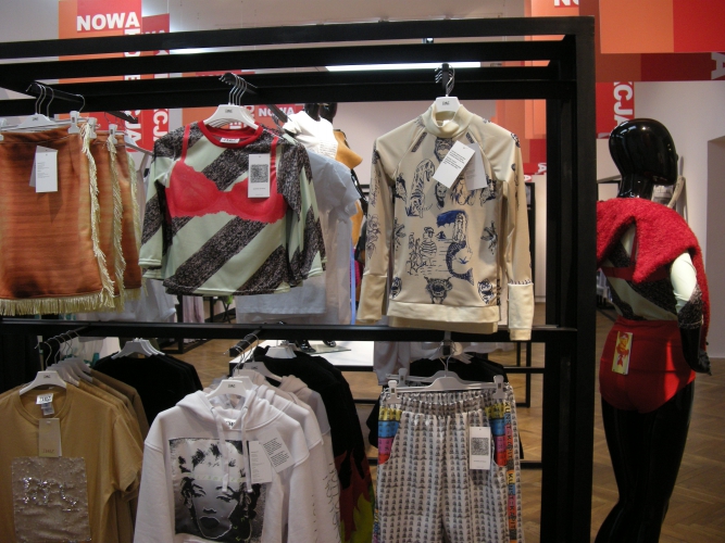Muzealny sklep z ubraniami w motywy zerżnięte z dzieł sztuki, ze stojakami na wieszaki pożyczonymi od Strzemińskiego? Cóż za przewrotny pomysł. Ten projekt pachnie świeżością.