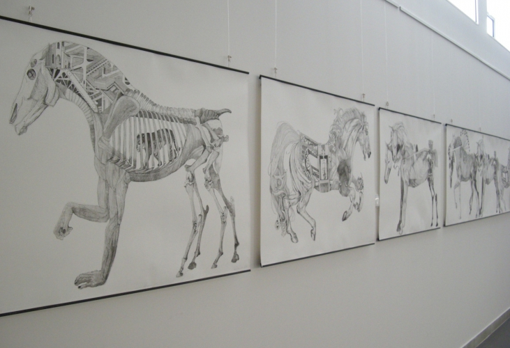 Olga Żukowska w serii bardzo ciekawych czarno-białych (z naciskiem na czerń w najgłębszym odcieniu) grafik odbiera ludziom głowy i twarze (za to w jej książce artystycznej z pozaginanymi stronami twarze dominują). Anna Kaczuba w udanych, delikatnych wklęsłodrukach surrealizuje anatomiczne przedstawienia koni, włączając w obręb ciała różne konstrukcje, postaci, zwierzęta (żebra stają się np. klatką dla tygrysa). Magdalena Czyżewska czyści obrazy ze zbędnych treści, przez co objawiają się najważniejsze aspekty jakiejś sytuacji, uporządkowane, czyste, ograniczone do czerni i bieli. Postać człowieka, przedmiot są figurami w przestrzeni. Niezwykle ciekawa realizacja.