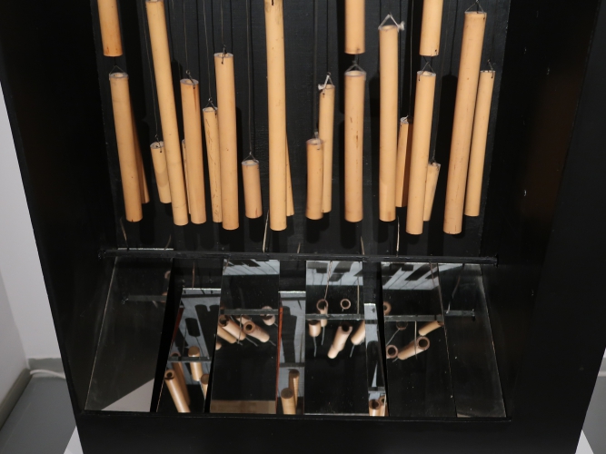 Najwięcej uwagi na wystawie przyciąga dźwiękowa rzeźba „Klantata” – podobno pierwsza w Polsce, wykonana wspólnie z Ireneuszem Pierzgalskim w 1965 roku. Poruszane przez mechanizm i obijające się o siebie niczym w tarasowych ozdobach fragmenty łodyg bambusa wydają charakterystyczny, relaksujący dźwięk. Ten efekt jest równoległy do niemal transowego efektu wizualnego – bambusy to przemieszczające się do przodu i do tyłu odcinki linii, do tego powielone w lustrze umieszczonym w dolnej części obiektu.