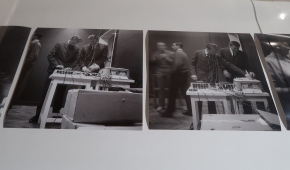 Dźwięk wydawany przez bambus równa się z kolei z dźwiękowymi eksperymentami Łobodzińskiego (robionymi w partnerstwie z Ireneuszem Pierzgalskim, a potem z Krystynem Zielińskim), prezentowanymi podczas „Audycji” w pracowni twórcy, w Galerii Foksal i w Muzeum Sztuki na przełomie lat 60. i 70. Ale równa się tylko w domyśle, bo na wystawie owych audycji nie usłyszymy. Być może ich audialna dokumentacja się nie zachowała albo nigdy nie powstała. Reprezentuje je wyłącznie ułożony na stole niczym artystyczna instalacja sprzęt używany do przetwarzania nagranych na taśmę dźwięków (konstrukcji Łobodzińskiego i Zielińskiego) oraz zachowane fotografie z akcji. Na wyobraźnię widza może zadziałać jedynie fragment kuratorskiego opisu tej części ekspozycji, mówiący o budowaniu dźwiękowego environmentu, którego substratami były przemieszczające się odgłosy toczącej się i uderzającej o ścianę kuli czy trzepotu skrzydeł motyla. Tyle że w ostatnim przypadku nawet wyobraźnia zawodzi – bo czy skrzydła motyla wydają jakikolwiek słyszalny przez człowieka odgłos?