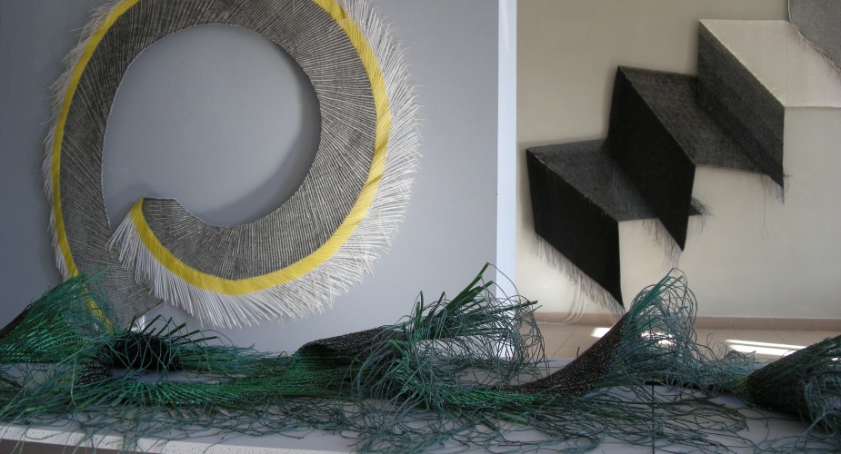 Płaszczyznowość prac pozwala im w interesujący sposób dialogować z tradycją sztuki geometrycznej. Nawet tkanina, która występuje jako przestrzenny obiekt – zielony zwój, spiralą przechodzący od formy koła do kształtu ściętego stożka – wykonana jest w płaszczyźnie i dopiero wtórnie „uprzestrzenniona”.