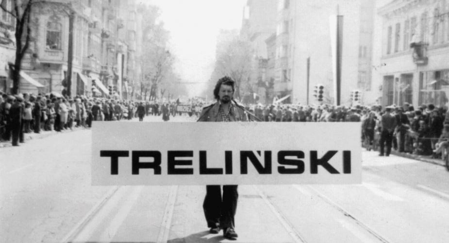 Jednym z najbardziej spektakularnych gestów był udział Trelińskiego w pochodzie pierwszomajowym w 1974 roku z transparentem z własnym nazwiskiem. Widzowie zobaczą oryginalny transparent, dokumentację fotograficzną i film z tej akcji, prezentowany w sposób wciągający ich w odwrócony kierunek marszu.