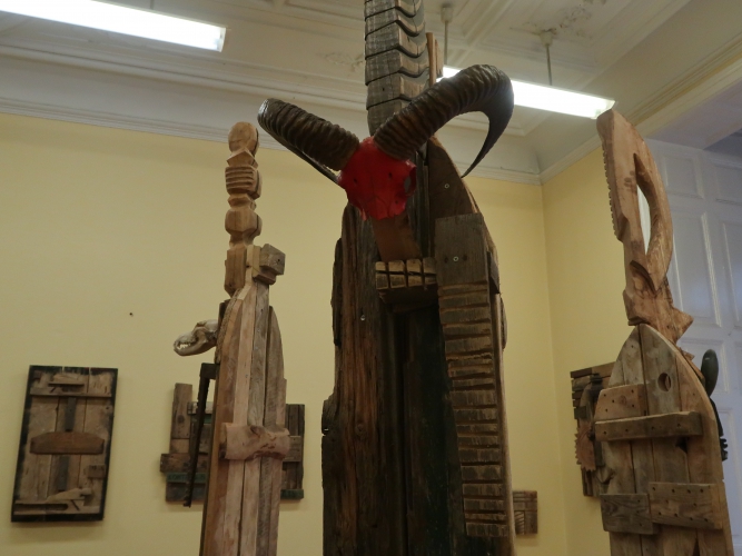 Próbką tego zróżnicowania niech będą przykłady kilku prac, które najmocniej utkwiły mi w pamięci. Tomasz Kwiatkowski na malutkich płótnach ilustruje w uroczo „nieporadnym” stylu scenki podpatrzone w okolicach Bałuckiego Rynku i Zielonego Rynku – ów lokalny sznyt, łącznie z „tubylczym” językiem. Ludzie nie mają twarzy, zaznaczeni są jedynie plamami farby. Artysta dostrzega to, co dla łodzian stało się już niezauważalne – wszak jego spojrzenie jest w miarę świeże, bo jakiś czas temu przybył tu z Warszawy. Kwiatkowski komentuje też ogólnopolską rzeczywistość – przedstawiając dzielną Polskę jako ostatni bastion chrześcijaństwa. Paweł Szlotawa interpretuje romską kulturę, malując wdzięczne, barwne obrazy w bajkowym, infantylnym stylu – z jakim kojarzy nam się ta kultura. Wojciech Pawliczuk, nazywający siebie „zbieraczem śmieci”, tworzy płaskorzeźby oraz fascynujące totemy zmontowane ze znalezionych w dawnych fabrykach, opuszczonych łódzkich kamienicach czy ulicznych zaułkach drewnianych elementów (w totemach dochodzą zwierzęce czaszki) – które są zarazem znakiem jakiegoś schyłku, jak i nowego początku.