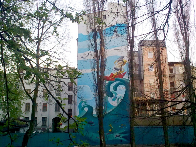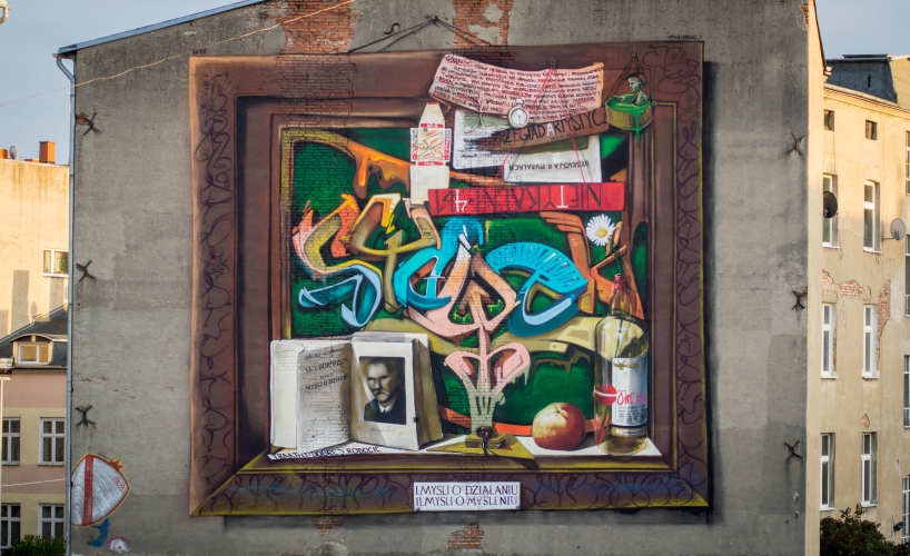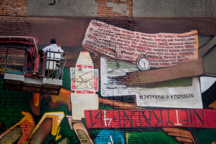 Wracam do pierwszych murali Galerii Urban Forms autorstwa łódzkich grafficiarzy i tych stworzonych przez nich w projektach na Starym Polesiu. Ciekawa byłam, co dzisiaj robią ci, którzy niegdyś malowali tagi na murach. Raku maluje murale na zlecenie. Barys tworzy grafikę 3D i jest ilustratorem w międzynarodowym wydawnictwie. Ovca od czterech lat maluje kajaki w Zakładzie Produkcyjnym „Plastex” w Warszawie – połowa kajaków używanych przez mistrzów olimpijskich jest jego dziełem. Meisal jest czasem w Łodzi, czasem w Londynie, bodaj on jeden pozostał wierny korzeniom.