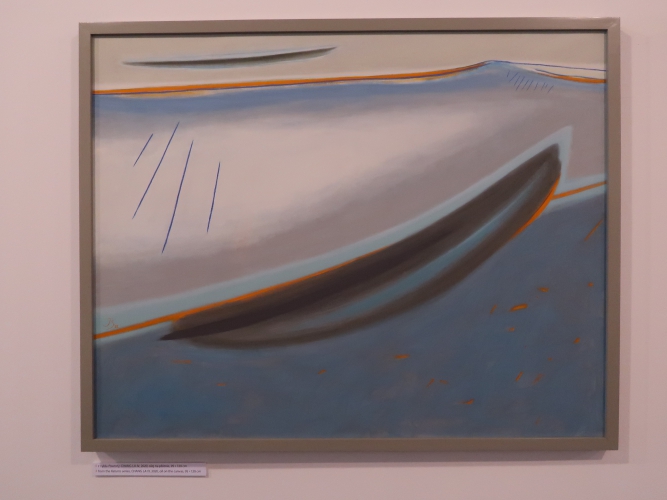 Czerpiący przyjemność z przebywania w naturze Jacek Świgulski umie przekazać swoje doznania za pomocą pędzla i farby. Płaskość płótna nie jest tu przeszkodą, działa wręcz na korzyść, pobudzając wyobraźnię odbiorcy. Nie tylko cieszymy się artystyczną wizją, ale i mimowolnie przypominamy sobie te obrazki gór, równin czy nizin, które sprawiły nam w realu tyle rozkoszy. Łódzki twórca oddaje z krajobrazu to, co najważniejsze: kolor, światło, strukturę i nastrój, gdy trzeba – także przestrzeń. Upraszczając przedstawienia, łączy gładkie, spokojne, „anonimowe” krycie farbą z bardziej dynamicznym, gdzie wyraźnie widać ślady pędzla – indywidualny malarski gest, „odcisk palca” twórcy. Szerokie pociągnięcia sąsiadują z wąskimi. Czasami farba kładziona jest szpachelką. Tam, gdzie nałożona jest gruba warstwa, tworzy się faktura, tam, gdzie cienka – uwidacznia się faktura płótna. Gdzieniegdzie jedno delikatne muśnięcie mocniejszym kolorem albo zadrapanie powierzchni wystarczy, by obraz nabrał wyrazistości. Smugi, które z daleka wydają się jednolicie różowe, z bliska okazują się zbudowane z różu, pomarańczu i czerwieni. Nawet „monochromaty” nie są monochromatyczne, ale złożone z różnych odcieni czy walorów czerni i bieli. Wszystko to – nawet zredukowane do achromatycznych pasm – ma oddać dynamikę i zróżnicowanie krajobrazu o różnych porach dnia, a zarazem coś, co z pozoru wydaje się przeciwieństwem dynamiki i zróżnicowania – kojący spokój. Mimo dynamizujących elementów nie jest to sztuka ekspresyjna, lecz wyważona, przemyślana – świadoma. Każda smuga i plamka jest tu na swoim miejscu.Uproszczenie, odrealnienie krajobrazu osiąga różną intensywność w różnych przedstawieniach. Dwa pionowe obrazy: „Niepamięć I” i „Niepamięć II” z 2023 roku są już właściwie czysto abstrakcyjne. Ich medytacyjny wydźwięk podkreśla pokrycie transparentną białą mgiełką. Patrząc na nie z daleka, widzimy jakby pewne przesunięcie kolorystyczne w biało-błękitnych smużkach – coś jak świetlny blik na fotografii robionej pod słońce. Z bliska to wrażenie zanika, widzimy już tylko dwa równolegle nałożone odcinki koloru. W tak prosty sposób udało się uzyskać ciekawy efekt optyczny. Z kolei obraz „Przystań VII” z 2021 roku nieodparcie kojarzy mi się z unowocześnionym Julianem Fałatem. Czy ten wielki twórca wspaniałych zimowych pejzaży właśnie tak by dziś malował?