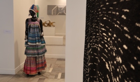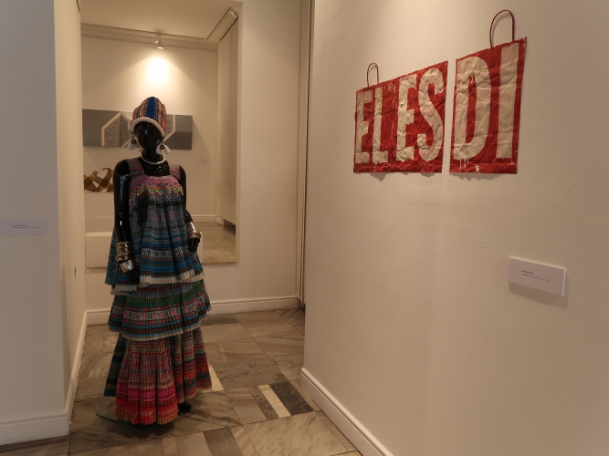 Najefektowniejsza jest oczywiście kolorowa, trójwarstwowa suknia Barbary Hanuszkiewicz, uzupełniona malowniczym nakryciem głowy – tak charakterystyczna dla twórczości tej projektantki i tak spójna z jej osobowością. Za najbardziej godne uwagi uważam zaś dzieła Andrzeja Chętki: „Shopping” – rozklejoną i rozłożoną na płasko papierową torbę zakupową z rozpisanym na jej trzy części słowem „ELESDI” (zakupy jako narkotyk…) oraz Jerzego Trelińskiego: „Koło koło koła” – niepozorną, abstrakcyjną grafikę, która jest optyczną grą; nie widać tu żadnych kół, ale gdy się przyjrzymy, okazuje się, że koła owszem są, tyle że w domyśle, bo zmieściły się tylko ich odcinki (to, jak postrzegamy świat, może zależeć od skali materii…). Wyróżniłabym też dużą, ale delikatną, inspirowaną kształtami zaczerpniętymi z natury drewnianą rzeźbę Włodzimierza Ciesielskiego – z pozoru abstrakcyjną, ale tak naprawdę przecież przedstawiającą (znów pojawia się kwestia skali) i abstrakcyjny obraz Andrzeja Gieragi „K 19” z szaro-żółtym tłem poprzecinanym pionowymi białymi liniami.