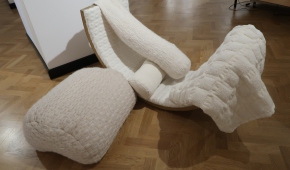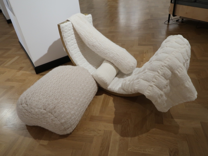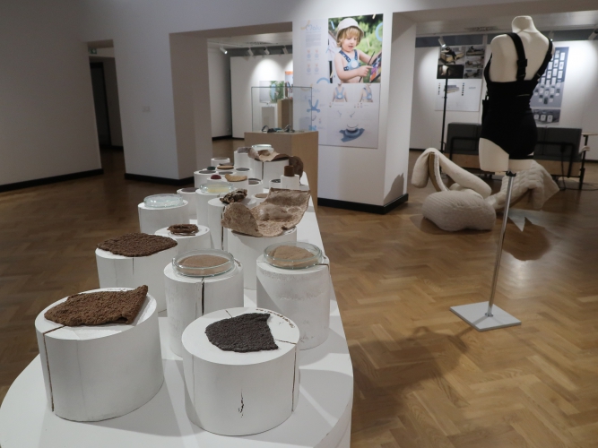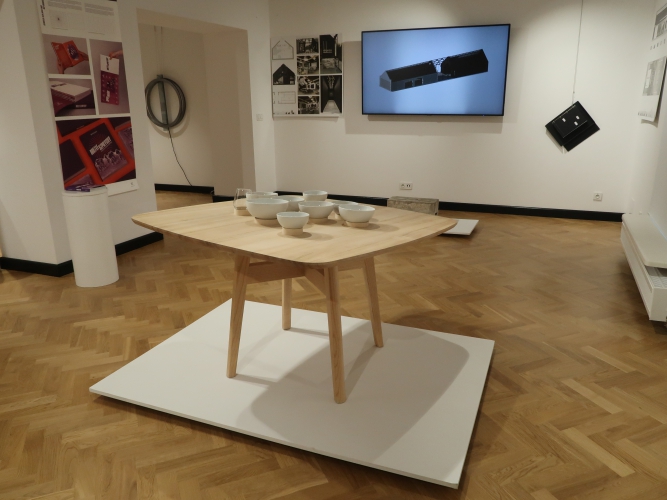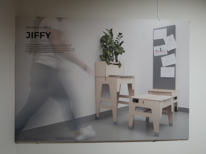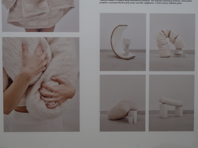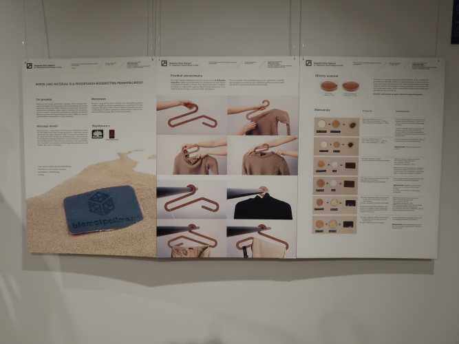 Weronika Wojnarowicz w trosce o naszą przyszłość stawia na ekologiczne rozwiązania, a naturalny korek jest podobno jednym z najbardziej zrównoważonych materiałów – jego pozyskiwanie nie jest szkodliwe dla środowiska. Poza tym korek ma wiele zalet – autorka projektu wymienia choćby właściwości izolowania termicznego i akustycznego czy antybakteryjność oraz wskazuje na to, że dbałość o lasy korkowe przeciwdziała ich pożarom i ginięciu zwierząt. Zbędne już przedmioty wykonane z korka nie stają się problemem dla przyrody, bo naturalnie się rozkładają. W przeciwieństwie do np. syntetycznych pianek, których używa się na uczelniach projektowych do przedstawiania wizualizacji projektów. Na trwającej wystawie jest takich piankowych tablic sporo – dobrze by było, gdyby przekaz Wojnarowicz dotarł do uczelnianych decydentów, żeby ta nagroda nie przeszła bez echa. Może korek zamiast pianki? Sama autorka proponuje np. korkowe wieszaki do ubrań – lekkie, zajmujące mało miejsca i o ciekawej formie. Do produkcji można stosować odpady z korka użytego do innych celów. Praca badawcza autorki (we współpracy m.in. z Politechniką Łódzką) przyniosła efekty w postaci kilku mieszanin, które można wykorzystać do tworzenia produktów o różnych zastosowaniach (np. jako proszku do druku 3D). Weronika Wojnarowicz nie pozostawia ich składów do własnej wiadomości, ale dzieli się nimi na tablicy informacyjnej. To bardzo konsekwentne i traktowane poważnie działanie proekologiczne. A nagrody dla autorek zwycięskich projektów – w pełni zasłużone.