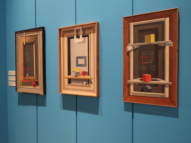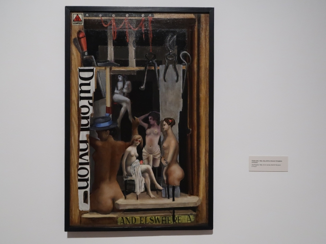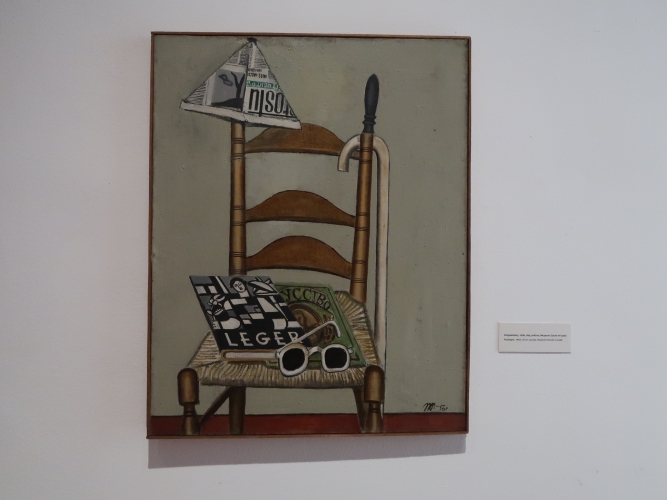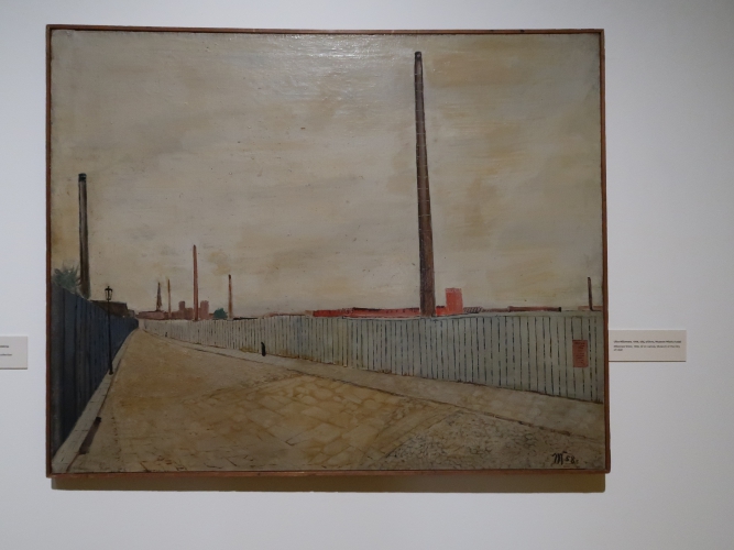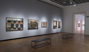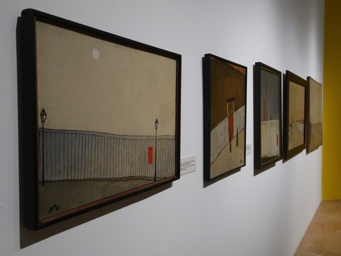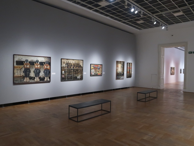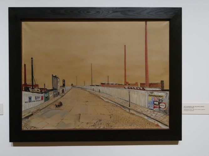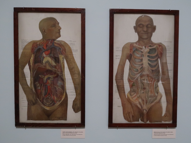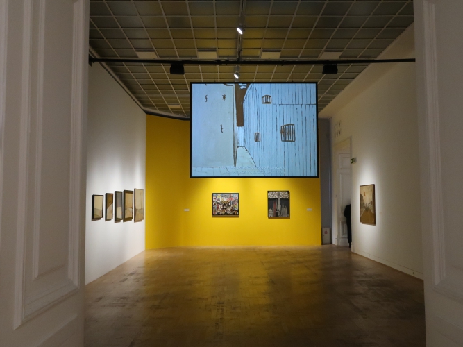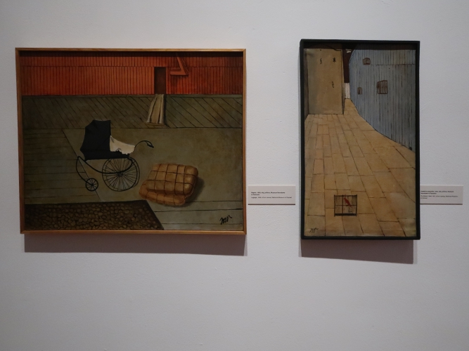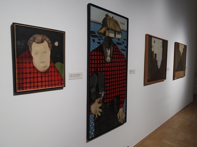 Pomysł na wystawę jest niewyszukany: w każdej z sześciu sal umieszczono obrazy pogrupowane tematycznie. Podobnie z aranżacją – płótna po prostu wiszą w ciągu (na szczęście przerywanym) na białych ścianach, a tam, gdzie jest więcej miejsca, postawiono ścianki pomalowane na niebiesko, żółto lub czerwono, co jednoznacznie kojarzy się z neoplastycyzmem. Nie wiem, jak to się ma do sztuki Krawczyka (poza tym, że i do tej stylistyki odwoływał się w obrazach). Z kolei jedna ze ścian w sali „anatomicznej”, z efektami pracy artysty w Zakładzie Anatomii Prawidłowej Akademii Medycznej w Łodzi (gdzie przez 22 lata był zatrudniony jako rysownik), ma kolor jasnobłękitny. I tutaj już całkiem nie rozumiem – jak to się ma do pozostałych kolorów? Nie widzę tu konsekwencji, nie wyczuwam zamysłu. Dla kontrastu – na prezentowanym na wystawie filmie Kazimierza Muchy o Krawczyku (Wytwórnia Filmów Oświatowych, 1972) można obejrzeć kilka ujęć z ekspozycji prac Krawczyka w 1971 roku. Gdyby nie „starodawne” umieszczenie obrazów piętrowo jeden nad drugim i blisko siebie, ówczesna aranżacja zdałaby się zdecydowanie bardziej nowoczesna niż ta aktualna. Wtedy dla obrazów stworzono bowiem architekturę, umieszczono je w planach, zagrano przestrzenią, teraz wiszą one grzecznie i nudno w mniejszej lub większej odległości od siebie, a jedynym ciekawym zabiegiem wydaje mi się powieszenie kilku płócien z pejzażami Łodzi z lat 50. blisko siebie, od największego do najmniejszego, co tworzy interesującą, kaskadową formę.