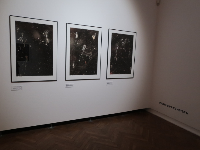 Pojawiające się w tytule wystawy i w napisach na ścianach muzealnej galerii miasta: Warszawa, Berlin i Paryż to oś, po której porusza się Pruszkowski – jego wielokrotnie pokonywana droga z miejsca pochodzenia (urodził się w Kazimierzu Dolnym, studiował architekturę w Warszawie) do miejsca zamieszkania (Paryż) i z powrotem, do drugiego miejsca zamieszkania (Kazimierz Dolny). Droga życiowa. Te trzy stolice i ich współrzędne to pinezki, którymi artysta oznacza ważne dla siebie punkty i którymi próbuje umocować siebie w płynnej rzeczywistości. Podobnie jak podany z dokładnością co do sekundy czas konkretnej „katastrofy”, oznaczonej nazwą któregoś mniejszego miasta znajdującego się na osi. W takiej perspektywie kosmiczne „wycinki” to kolejne etapy niekończącej się, zapętlonej drogi. A na każdym etapie, w każdej chwili naszego życia dochodzi do wspomnianych zderzeń – do dotychczasowych doświadczeń dochodzą kolejne.