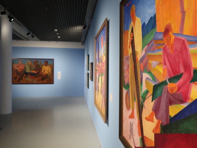 Ukraińscy twórcy pierwszych dekad XX wieku, tak jak i działający wówczas na tej ziemi artyści innych narodowości pozostawali pod wpływem najważniejszych nurtów międzynarodowej awangardy: kubizmu, ekspresjonizmu czy futuryzmu – a jednocześnie część z nich przemycała do swoich dzieł lokalny pierwiastek. Choćby odwołania do kultury ludowej, prawosławnej sztuki sakralnej czy sztuki użytkowej. Warto tu przywołać Michajło Bojczuka (absolwenta krakowskiej Szkoły Sztuk Pięknych) – w swoim neobizantyjskim stylu inspirującego się sztuką sakralną i ludową czy Aleksandrę Ekster – admiratorkę ukraińskiej sztuki ludowej i rzemiosła artystycznego. Te dwa nazwiska wybrzmiewają na wystawie najwyraźniej, są to bowiem wielkoformatowe postaci: nie tylko ważni artyści, ale też animatorzy wyznaczający kierunki rozwoju ukraińskiej kultury.