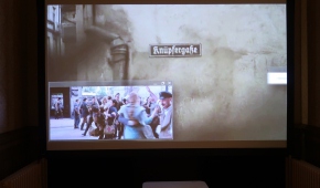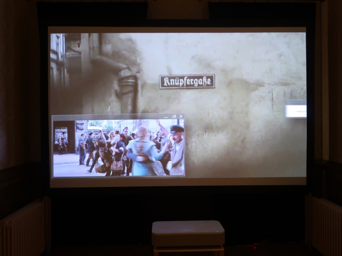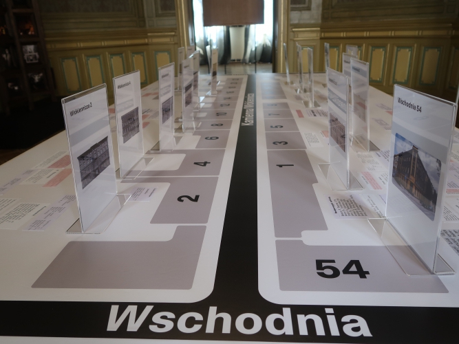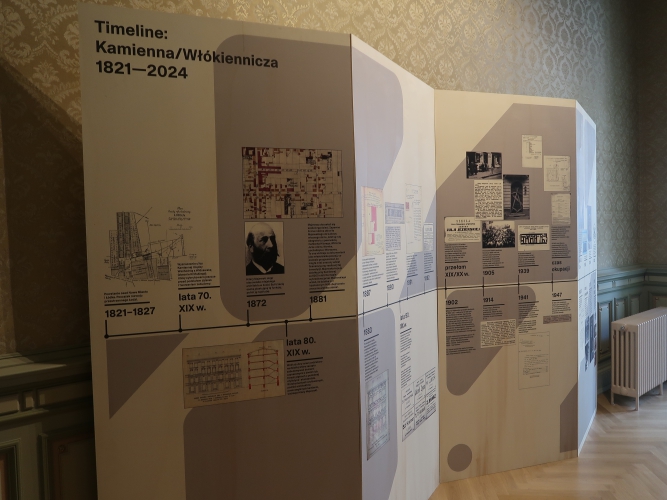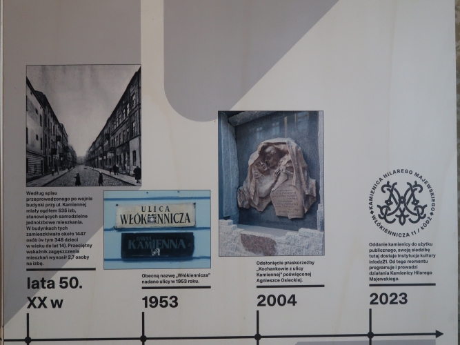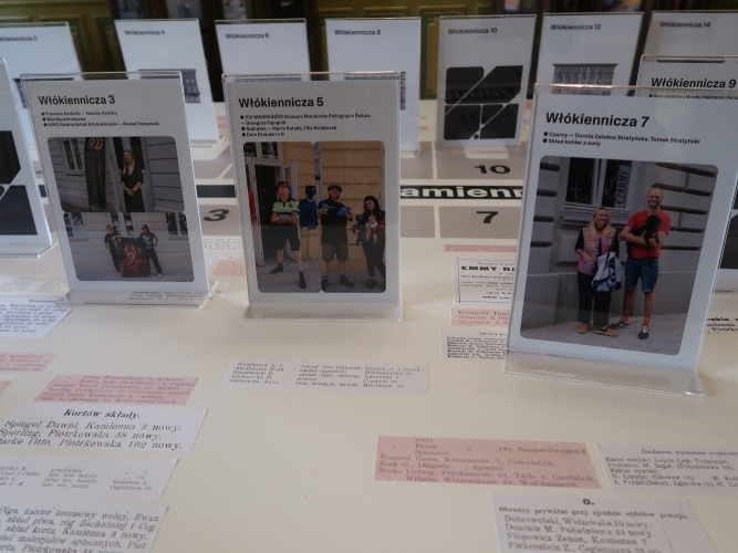 Ciekawym pomysłem jest swego rodzaju makieta ulicy opatrzona starymi ogłoszeniami prasowymi z informacjami, co mieściło się pod którym numerem, oraz zdjęciami współczesnych najemców lokali przy Włókienniczej – spośród miejsc związanych z kulturą to oprócz Kamienicy Hilarego Majewskiego pod numerem 11 m.in. Galeria AOKZ spod trójki, 100 Manekinów – Muzeum Mundurów Policyjnych Świata (z kolekcji Grzegorza Fajngolda) spod piątki czy wreszcie nieotwarty wciąż Atlas Sztuki spod dwudziestki.