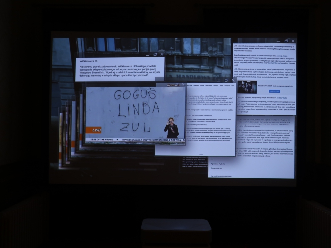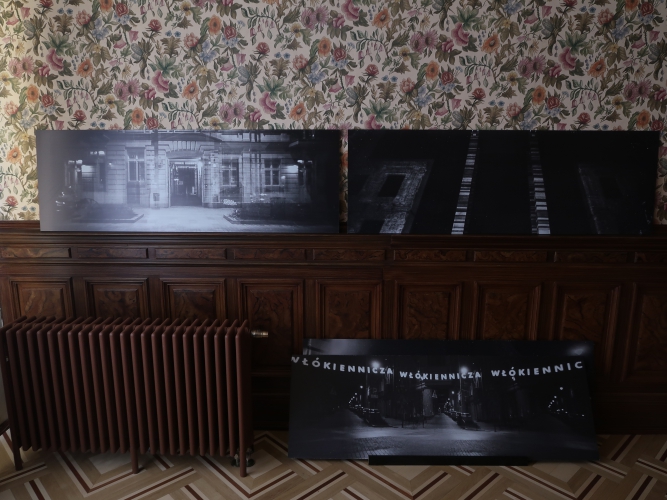 Przypomniano akcje, które odbywały się na Włókienniczej, jak pokaz mody zorganizowany w 2023 roku przez Fundację Działania, sesja fotograficzna związana z projektem Jacka Grudnia i Aleksandry Grudzień (2016 rok) czy spektakl w reżyserii Konrada Dworakowskiego w ramach projektu Dotknij Teatru 2015. Oglądamy też wykonane w opuszczonych lokalach przy Włókienniczej fascynujące zdjęcia Aleksandry Wysokińskiej z lat 2015–21 i czarno-białe fotografie zrewitalizowanej ulicy autorstwa Karola Janiaka. Poza tym m.in. odtworzony przez sztuczną inteligencję na podstawie jedynej zachowanej, złej jakości fotografii poczwórny wizerunek Hilarego Majewskiego, flankowany wiszącymi w oknach kotarami, na których nadrukowano algorytmiczny wygląd miasta przemysłowego z przełomu XIX i XX wieku.