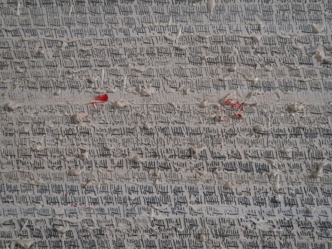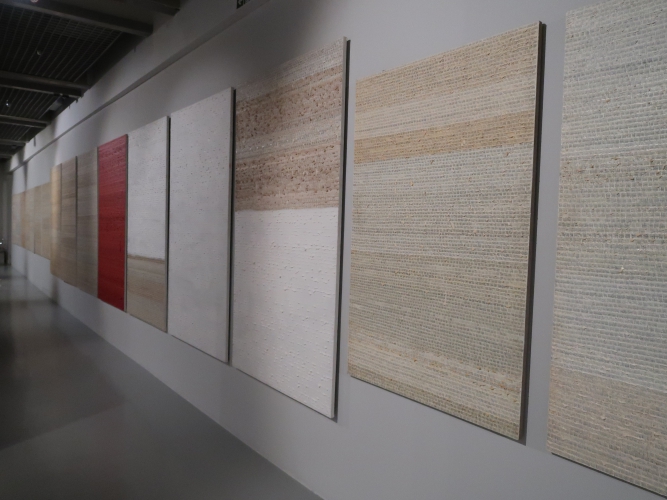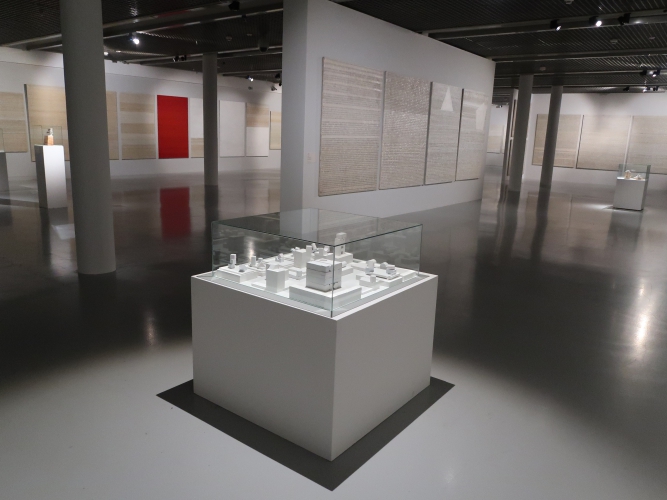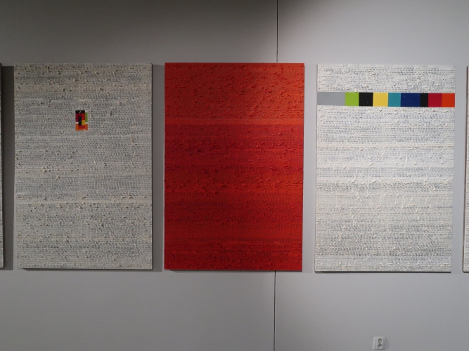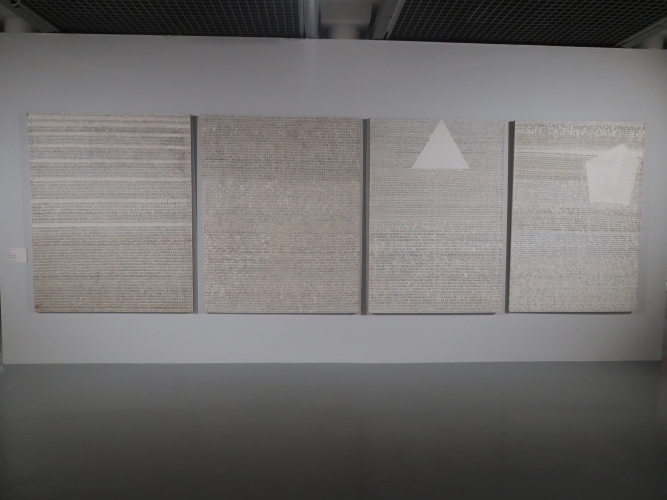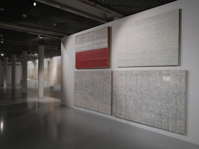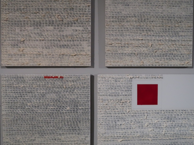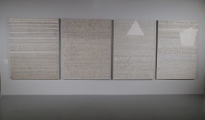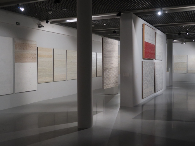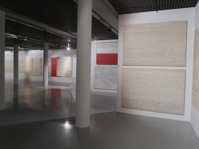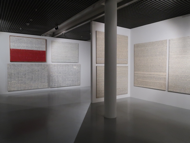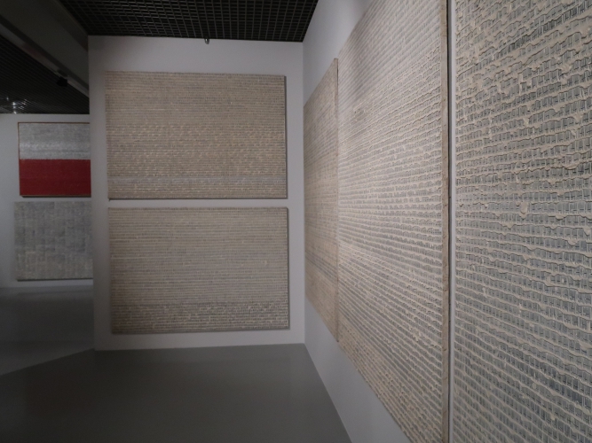 Na wystawę wchodzimy bowiem jak do świątyni, wkraczając w strefę światłości. Bo światło jest tu, oczywiście poza samą sztuką, głównym czynnikiem oddziaływania na widza. Także dzięki temu, że w pracach Włodzimierza Pawlaka przeważa odbijająca promienie biel. A same obrazy – na pierwszy rzut oka niemal jednorodne – tworzące wzdłuż ścian galerii długie jasne fryzy, składają się na architekturę przestrzeni, którą jesteśmy otoczeni i która, zgodnie z perspektywą zbieżną, kieruje wzrok w głąb sali jak na renesansowych płótnach. Efekt całości jest wręcz medytacyjny.Malarstwa Pawlaka nie sposób nie skojarzyć z obrazami liczonymi Romana Opałki – to także maksymalnie uproszczony formalnie, niby chłodny, ale przecież przejmujący zapis życia i przemijania. Z tym że Włodzimierz Pawlak odlicza czas jak więzień: siedem kreseczek i przekreślenie – przerwa – siedem kreseczek i przekreślenie. I tak (prawie) bez końca. Odlicza skrupulatnie, ale nie wie przecież, gdzie jest kres. Może zatem jest to raczej odliczanie pełnego nadziei rozbitka albo po prostu artystyczny odpowiednik zrywania kartek z kalendarza – gest oznaczający pogodzenie się z przemijaniem. Od sztuki Opałki różni te prace jeszcze coś – Pawlak zaznacza momenty dramatów, radości czy też zwykłych, niebudzących namiętności zdarzeń, nakładając grubiej farbę, plamiąc płótno odrobiną czerwieni, chlapiąc pędzlem. Albo umieszcza na niektórych obrazach geometryczne figury: mniejsze, większe, białe, kolorowe, przełamujące jednostajność rzędów przekreślonych tygodni. Pozwolił sobie także namalować obrazy czerwone, a nawet jeden biało-czerwony (tak, z narodowym podtekstem – w 1989 roku). Szlachetna biel (zażółcona tam, gdzie autor celowo użył farby, która z czasem zmienia odcień) jednak dominuje w tym malarstwie – tak jak w obiektach.