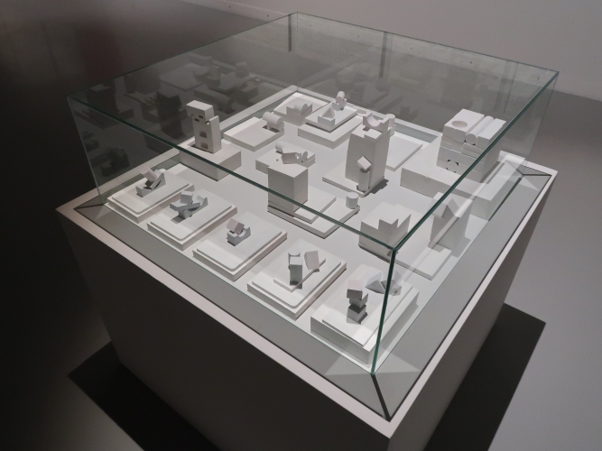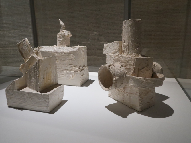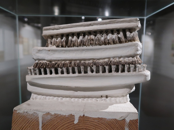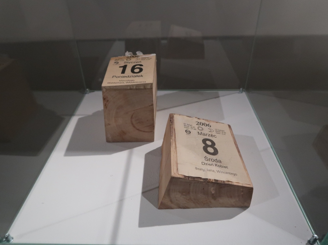 Obiekty są niewielkie, na wystawie zamknięte w szklanych gablotkach. To geometryczne, konstruktywistyczne formy, bryły albo zwykłe przedmioty wyjęte z codzienności, ale zawsze przetworzone, bywa że z humorem, surrealizujące – jak szczotki, które połączone ze sobą i pomalowane na biało, przypominają szczękę ze szczerzącymi się zębami. Znalazły się wśród nich także naklejone na drewniane klocki rzeczywiste kartki z kalendarza z 2006 roku – te z ważnymi datami: 8 marca (Dzień Kobiet) i 16 stycznia (imieniny Włodzimierza), przy czym do klocka z „imieninami” doczepiono pomalowane na biało tubki farby.