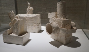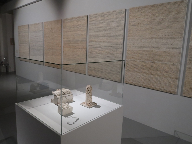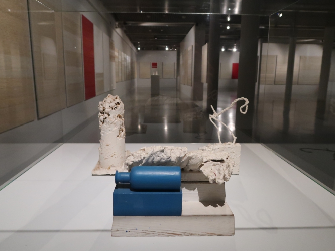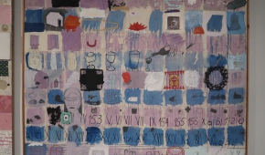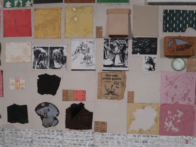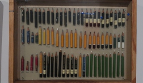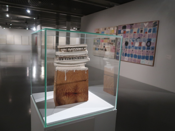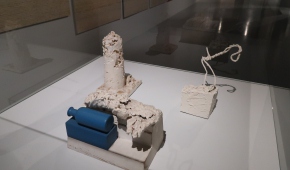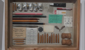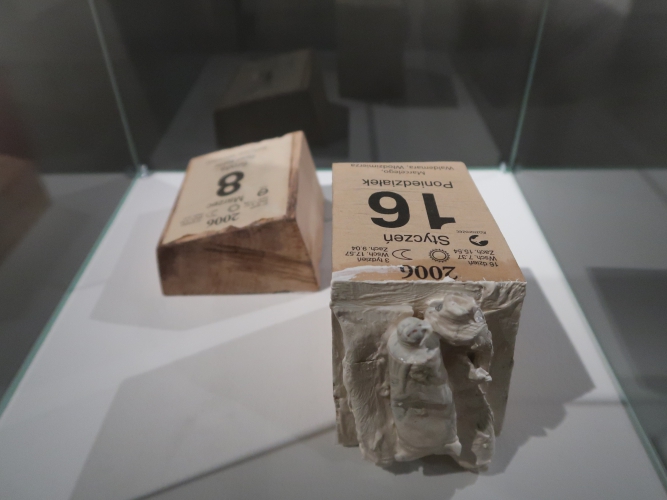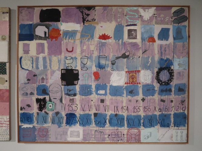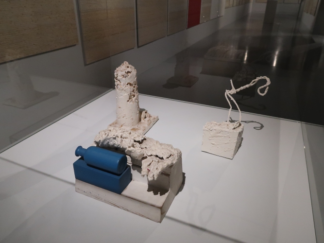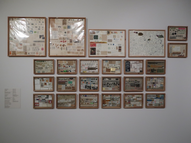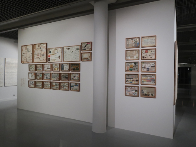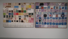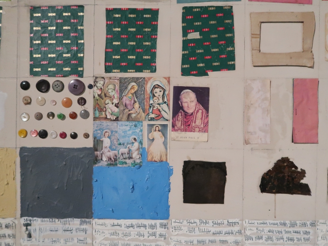Są jeszcze zbiory pamiątek po życiu – rozmieszczonych w równych rzędach w „obrazkach-gablotkach”. Na wystawie owe asamblaże skupiono w jednym miejscu, jako zespół elementów. W zbiorach mieszczą się rzeczy różne, na równi ważniejsze i nieistotne (ale za to urocze – jak papierowe główki aniołków), a nawet zwykłe śmieci. Tekturowe bilety kolejowe, etykieta Żytniej, noga lalki, kółka zębate, znaczki pocztowe, spinacze, korki od szampana, kalendarzyk z 1993, kawałki kopert, niedopałki, bilet jednorazowy MZK Warszawa za 4000 zł, no i pozostałości działań twórczych: zgniecione tubki po farbie, resztki ołówków (z rysikami ubrudzonymi białą farbą od odhaczania kolejnych dni). A każdy z tych skatalogowanych odprysków rzeczywistości ma swój numer. To jak muzealna kolekcja przyrodniczych okazów z minionego czasu. Ostatni asamblaż jest niedokończony – artysta przerwał pracę na trzech resztkach niebieskich ołówków i czterech naklejkach informacyjnych z wypukłymi białymi trójkątami, dla niewidomych…