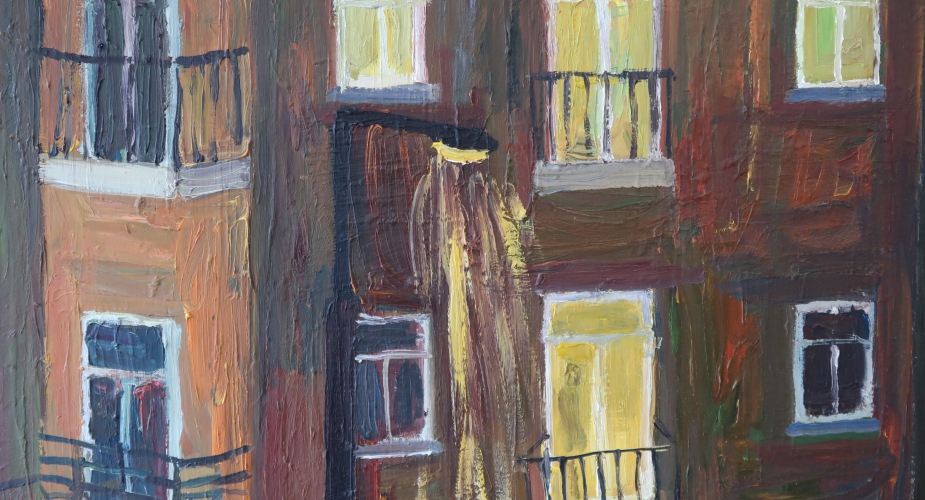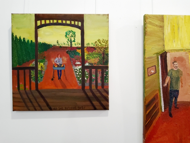Gdy zaczynała myśleć o tej prezentacji, zapewne nie wiedziała jeszcze, że akurat ona z owego symbolicznego progu się wybije. W styczniu otrzymała Paszport „Polityki” za 2023 rok w kategorii „sztuki wizualne” – za malarstwo, „w którym socjologiczna dociekliwość łączy się z psychologiczną przenikliwością, a osobiste doświadczenia przekładane są na uniwersalne prawdy. Za wielowymiarowy portret młodego pokolenia Polaków”.Co kryje się za widokiem martwej natury z kwiatami w wazonach i fotografią na parapecie okna, za którym jak klocki układają się bryły osiedlowych bloków? Albo innej martwej natury – z malarskimi paletami w zlewozmywaku, gąbką i płynem do mycia Kubuś? Za przekrojem pokoju, w którym przy stole naprzeciwko siebie siedzą dwie osoby? Za grillowaniem w ogrodzie? Za kamienicą na placu Wilsona, przed którą na przystanku z reklamą Tymbarku czekają dwie kobiety (jedna chyba marznie, druga, zdaje się, rozmawia na głośnomówiącym przez telefon)? Otóż mieści się w tym wszystko, czyli życie. Codzienność – to, co najbardziej zajmujące, a dla niektórych dojmujące. Bo Marta Nadolle przede wszystkim żyje, a dopiero potem jest artystką. A właściwie znalazła sposób na to, by jej życie było sztuką, a sztuka życiem – w tym przypadku to dwie nierozerwalne, przenikające się wartości. Długowłosa blondynka z obrazów jest zapewne samą autorką.