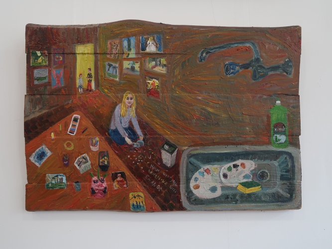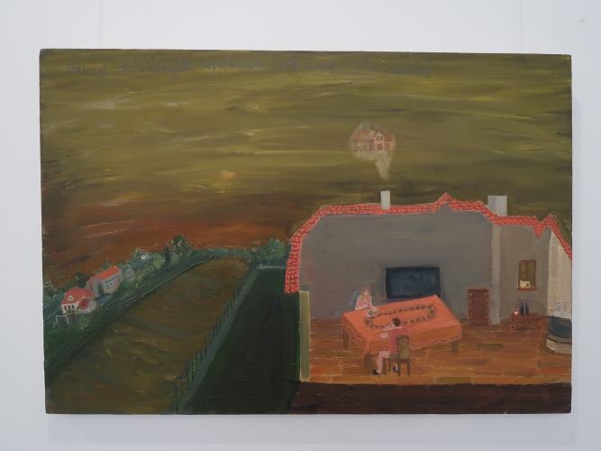 Zwyczajność jest stosownie obrazowana, jakby oglądana niewprawnym, ale ciekawym świata dziecięcym okiem i malowana niewprawną dziecięcą ręką (sympatię budzą zwłaszcza wizualizacje sztucznego oświetlenia). Choć jako dyplomowana artystka Nadolle mogłaby cyzelować świat przedstawiony, nie robi tego, lecz wizualnie go upraszcza. Farbę kładzie „byle jak” na znalezionych gdzieś deskach czy płytach (czasem sztukowanych, by zmieścić kompozycję), opatrując przedstawienia koślawymi napisami, które są zarazem tytułami obrazów. I w tej surowości jest jakaś prawda, jakieś sedno, niczym w sztuce nieprofesjonalnej.