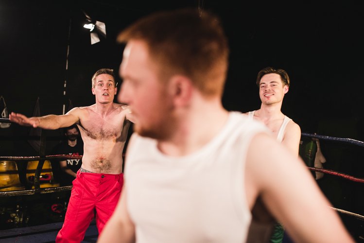 Małgorzata Bogajewska zaproponowała, by zestaw kilkunastu scen - pochód przemocy, jak mówi - rozgrywać w przestrzeni ringu, który zajmuje większą część Małej Sali Teatru Studyjnego. Postać, która w jednej ze scen jest ofiarą, w kolejnych staje się katem.