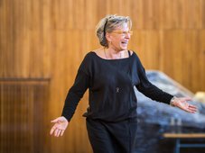 – Jesteśmy po pierwszym okresie prób. Wydaje mi się, że sprawy idą pomyślnie. Mam łatwość komunikowania się z ludźmi, jestem sugestywna, a sprawy muzyczne, w sensie poznania partytury i libretta, są dawno za mną. Mam też koło siebie wielu, którzy się na tym znają lepiej niż ja. A pan Piotr Wajrak, dyrygent i de facto szef całego przedsięwzięcia, czuwa cały czas. Atmosfera jest sprzyjająca.