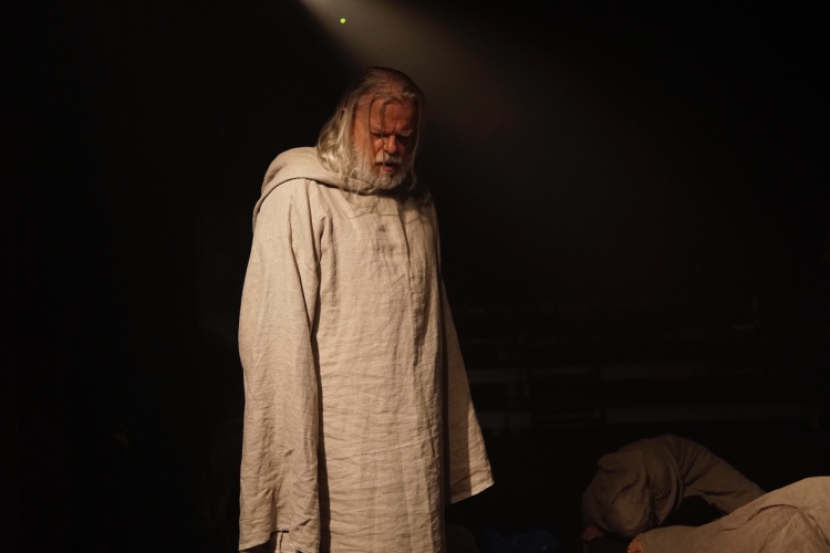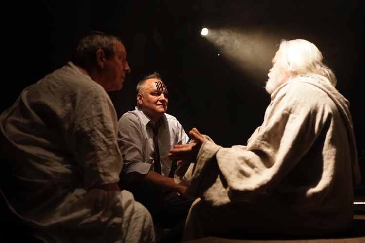 Tekst obecny jest jako wypowiedzi aktorów, pada też z offu (wśród „czytających” głosów wprowadzono także dyrektora i spiritus movens Logosu, ks. Waldemara Sondkę, co otwiera spektakl na metateatralne odczytanie czy po prostu czyni go częścią „życia”). Ważne jest cykliczne i celowe „rozszczepienie” planu aktorskiego i tekstu, postaci scenicznej i słowa. Czasem swoje kwestie aktorzy wypowiadają z „offu” własnym głosem, czasem jest to głos „obcy”, jakby zewnętrznego narratora – ważna jest wtedy swoistość samego medium i odmienna od charakteru scen spokojna tonacja, refleksja podana z dystansem – jakby oglądanie siebie przez bohaterów z oddalenia czasowego albo oglądanie ich przez inne, wyższe, istoty.