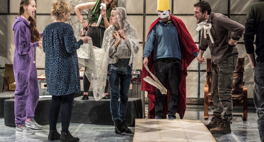 „Idioci”, prapremiera w Teatrze im. Jaracza 23 II 2019. Reżyseria – Marcin Wierzchowski, dramaturgia – Daniel Sołtysiński, Jakub Klimaszewski, scenografia – Katarzyna Minkowska, kostiumy – Ewa Mroczkowska, ruch sceniczny – Aneta Jankowska, muzyka – Radosław Duda, światło – Katarzyna Smożewska, wideo – Tomasz Pawlik, Kacper Gawron.