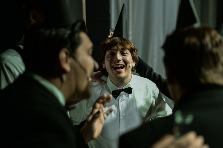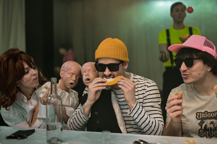 Dobrych pomysłów inscenizacyjnych jest w przedstawieniu więcej. Nośne znaczeniowo jest na przykład użycie traktowanych jak przedmioty lalek jako przywiezionych na uroczystość dzieci. Także małe, dziecięce krzesełka użyte jako rekwizyty w opowiadaniu o przeszłości stanowią dobrą wizualną metaforę. Gorszym pomysłem okazały się próby uczynienia z tekstu czarnej komedii. Dowcipy i zabawne sytuacje, które miały kontrapunktować ciężkie psychologicznie treści, często po prostu nie działają. Być może chodzi o nastrój widza, który nie jest w stanie śmiać się i płakać (prawie) jednocześnie.