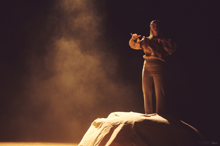 Spektakl w wykonaniu Ewy Cywińskiej (tancerki z niepełnosprawnością słuchu), Sary Kozłowskiej, Aleksandry Kuś, Zuzanny Nir jako jeden z trzech projektów otrzymał szansę realizacji dzięki II edycji konkursu „Szklarnia – Inkubator Teatralny” w ramach programu „Przestrzenie Sztuki Łódź – Teatr 2022”.W polskim teatrze w ostatnich latach coraz częściej powstają spektakle skupiające się na zagadnieniu dostępności kultury dla osób ze szczególnymi potrzebami, m.in. z niepełnosprawnością słuchu. Po raz pierwszy sztukę wykorzystującą język migowy miałam przyjemność obejrzeć w 2021 roku podczas X Międzynarodowego Festiwalu Teatralnego Karuzela NATURATYKA w Łodzi, kiedy na deskach łódzkiego Teatru Pinokio zaprezentowano spektakl „Morze ciche” w reżyserii Łukasza Zaleskiego z Teatru Nowego z Zabrza. Po przedstawieniu zastanawiałam się, czy twórcy w swoich projektach nie powinni jeszcze bardziej eksperymentować z materią teatru i czy widzowie są gotowi na takie spektakle, w których słowa kreślone w powietrzu oddziałują z taką samą intensywnością, jak słowa mówione.
