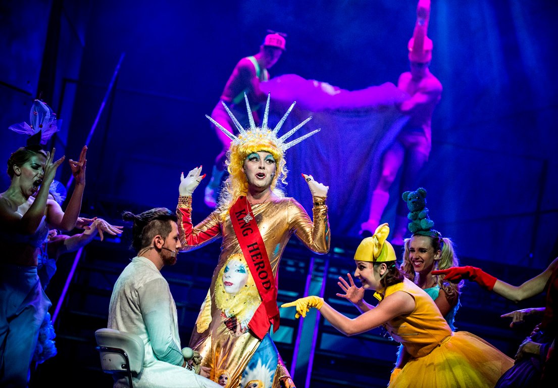 Musical przenosi kluczowe wydarzenia z Ewangelii – ostatnie dni życia i ukrzyżowanie Jezusa – do czasów współczesnych twórcom, czyli lat 60. XX wieku. Łódzka inscenizacja uwspółcześnia losy Chrystusa jeszcze bardziej: arcykapłani wyglądają jak połączenie dyrektorów korporacji z szefami mafii, postać króla Heroda – barwnego transwestyty otoczonego przez mężczyzn przebranych za króliczki Playboya – nawiązuje do skandalu z bohaterką tegorocznej Eurowizji, Conchitą Wurst, a Jezus tuż przed swą męczeńską śmiercią musi oganiać się od wścibskich dziennikarzy i paparazzich. Przesłanie jest jasne – dylematy i cierpienia Chrystusa mają charakter ponadczasowy, a walka o władzę ciągle trwa, tylko przyjmuje różne oblicza.