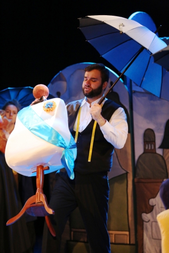 Jaki to w efekcie spektakl? Pomyślany jako propozycja dla możliwie szerokiej widowni, popularny. Inscenizacja jest zatem przystępna, humor – ten językowy, od Makuszyńskiego, wybrzmiewa czytelnie, czysto, konwencja – przewaga gry w żywym planie połączonej z animacją przedmiotów, który zmieniają się w lalki – również bezpośrednia. Spektakl ma też do bezpośredniej interakcji z aktorami zachęcać (i zachęca). Tyle że w „Arlekinie” oglądamy nie „Krawca Niteczkę”, ale „Krawca pana Niteczkę”. To uczciwe postawienie sprawy, bo nie jest to wierna realizacja tekstu Makuszyńskiego, ale adaptacja poszerzona o autorskie pomysły Waldemara Wolańskiego, reżysera, ale też autora scenariusza i – całkiem ciekawej – muzyki. Rzec by można, człowieka-orkiestrę. A może raczej człowieka-zakład krawiecki, by być adekwatnym do ramy teatralnej, w której tekst Makuszyńskiego został umieszczony?Aktorzy stopniowo pojawiający się na scenie i wokół widowni ubrani są w granatowe fartuchy i zajęci różnymi czynnościami – jedni zamiatają resztki, inni obijają się, jeszcze inni witają widzów w zakładzie krawieckim (prowadzi go niejaka Marzenka, w tej roli Agata Butwiłowska). Zdejmują z nich miarę, odgadują zlecenie, po które przyszli. Nie są może zbyt rozgarnięci, choć na swój sposób sympatyczni. Ot, komuna dziwaków, enklawa dla postrzeleńców. Trwaliby w niej, gdyby nie pojawienie się Strasznej Pani Inspektor (Adrianna Maliszewska) z Bardzo Ważnego Urzędu, która z wyższością i lekceważeniem odnosi się do całej świty, a przynosi decyzję o zamknięciu zakładu za nieopłacone rachunki – słowem, za nieopłacalność. Krawcy argumentują, że za zakładem stoi długa tradycja, ale to nie robi na kobiecie wrażenia. Eksponuje ona swoją władczość, a gdy nie budzi tym oczekiwanego respektu, sięga po legitymację – gdy i ta nie robi wrażenia, wprowadza na scenę legitymację olbrzymkę. Taki to często jest humor – ten do Makuszyńskiego dodany – czasem trafiony, operujący dwuznacznościami, czasem przesadzony. Krawcy decydują zatem udowodnić swoją przydatność wystawiając „Krawca Niteczkę”. Że to trochę nie po drodze? Co łączy krawców z teatrem? Lepiej nie dociekać tylko poddać się biegowi akcji, bo wszystko to przebiega sprawnie, na ogół nie nachalnie, a rozkręcająca się bieganina nada zaraz tempo scenom i stanie się jednym z głównych elementów konwencji, ekspresyjnej farsy dla dzieci dopełnionej kabaretową umownością i puszczania oka do widza.