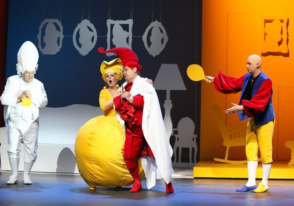 Teatrze Wielkim w Łodzi.Ta pierwsza bodaj premiera 2014 roku na łódzkich scenach to świetna propozycja na karnawał – pozwala beztrosko cieszyć się muzyką i teatrem, nie zmuszając do trudnych przemyśleń i refleksji. Realizatorzy (spektakl wyreżyserowała Natalia Babińska, scenografia jest dziełem Diany Marszałek, a pyszne kostiumy – Julii Skrzyneckiej) mieli znakomity pomysł na uwspółcześnienie niemal dwustuletniego dzieła Gioacchina Rossiniego tak, by jednocześnie nie przybliżać go do realnego świata. Stało się to możliwe dzięki przyjęciu konwencji Disneyowskiej kreskówki. Tę ideę poznajemy już podczas uwertury (współczesna publiczność jest niecierpliwa, nie lubi „tylko” słuchać, podczas gdy scena pusta): na naszych oczach tytułowy bohater rysuje panoramę Sewilli, co przywodzi na myśl włoski miniserial La Linea lub polski Zaczarowany ołówek. Zamysł reżyserski wspiera wyrazista szata kolorystyczna kostiumów i dekoracji: na scenie użyto tylko trzech kolorów podstawowych w nasyconych, czystych odcieniach – żółtego, czerwonego i niebieskiego – oraz bieli i czerni. Każdy z bohaterów nosi kostium jednokolorowy z wyjątkiem Figara, którego strój łączy wszystkie barwy, tak jak jego postać spaja różne wątki libretta i jest kołem zamachowym akcji scenicznej.