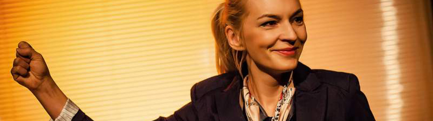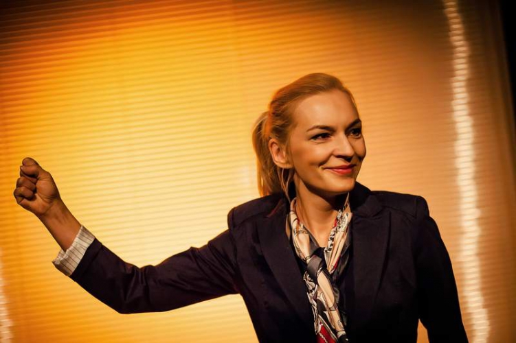 Teatr WARSawy - "Tato nie wraca": MonoDramatMonodram Agnieszki Przepiórskiej to mocne otwarcie festiwalu. "Tato nie wraca" Teatru WARSawy jest spektaklem opartym na osobistych przeżyciach aktorki. Piotr Rowicki, dramaturg, stworzył z nich niebanalną, szczerą do bólu historię, która ściska za gardło. Pod mundurkiem perfekcyjnej pracowniczki banku skrywa się dziewczynka tęskniąca za ojcem, który zostawił ją i matkę. Pewna siebie, wykształcona, pomocna i uśmiechnięta Agnieszka zaprasza widza w podróż do czasów dzieciństwa. Ten okres nie kojarzy jej się z krainą beztroski, ale z ciągłym pytaniem: dlaczego tato nie wraca? Odpowiedzi wciąż brak. Wspomnienia rozdrapują wciąż niezagojoną ranę. Te emocje aktorka (Agnieszka Przepiórska) przekazuje widzowi. Moment, w którym jej postać schodzi na widownię przytulając się do męskiej części publiczności jak do swojego ojca, chwyta za serce. Dopełnienie tej sceny utworem „Co powie tata” było bardzo dobrym pomysłem. Za pośrednictwem oszczędnych środków wyrazu udało się aktorce i reżyserowi, Piotrowi Ratajczakowi, przekazać tak wiele emocji: minimalistyczna scenografia stylizowana była na okno, za którym czaiły się wspomnienia związane z ojcem, a daleka od przesady i nadmiaru ekspresji gra aktorska Przepiórskiej sprawiła, że widz poczuł tę intymną atmosferę i zanurzył się w opowieści.