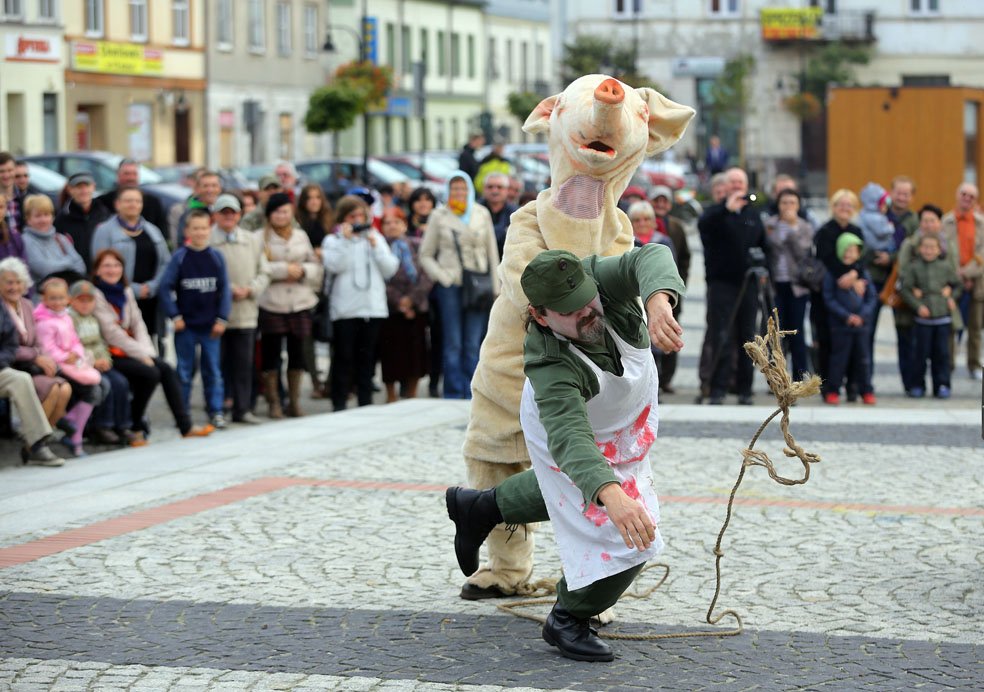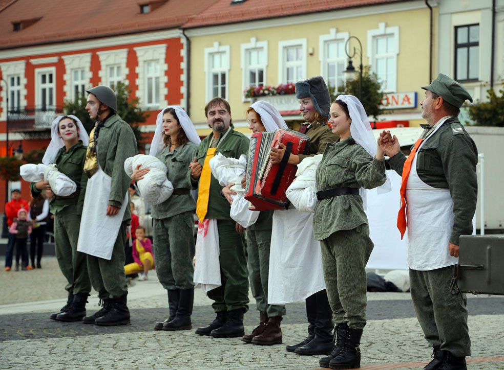 Sieradz przywitał publiczność słońcem i wysoką (jak na tę porę roku) temperaturą. Zgromadzona na Starym Rynku publiczność mogła w sobotę rozkoszować się spektaklem „Gerda” Teatru of Manhattan – znaną wszystkim z dzieciństwa opowieścią o Królowej Śniegu, Kaju i Gerdzie, ale… w wydaniu dla dorosłych. Baśń o uprowadzeniu Kaja i uratowaniu go przez Gerdę to, w interpretacji łódzkiego teatru, historia dwojga dorosłych ludziach zakochanych w sobie, gdzie płatek śniegu w oku Kaja każe zapomnieć mu o Gerdzie, a budzi fascynację dojrzałą kobietą – Królową Śniegu. I dalej historia jak z bajki: Gerda poszukująca swej miłości, Elfy, które skutecznie utrudniają jej owe poszukiwania i Królowa Śniegu, która nie chce wypuścić ze swych rąk młodego mężczyzny. Na koniec chciałoby się powiedzieć „żyli długo i szczęśliwie”, a mimo opowieści o krainie lodu, słońce padające na aktorów i widzów dodawało nadziei i radości, zarówno dorosłym skupionym na spektaklu – jakby szukającym powrotu do dzieciństwa, jak i dzieciom zbierającym w dłonie ścinki folii aluminiowej i białego papieru imitujące śnieg, aby za chwilę rzucić je z powiewem wiatru – z ogromnego szczęścia.