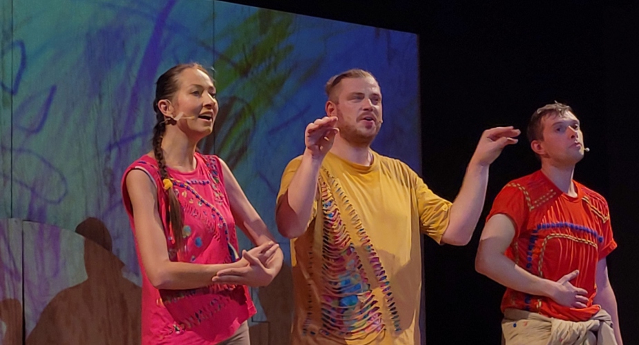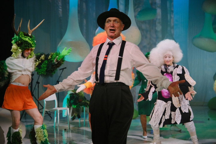 Na tym tle drugi spektakl, „Ciepłe pszczoły, zimne jelenie albo jak pozbyć się dzieci” w reżyserii Gabriela Gietzky’ego, wypada blado. I nie chodzi tylko o to, że tytuł prowokuje do złośliwych komentarzy. Może nie wypada blado w sensie dosłownym – bo kostiumy są barwne i groteskowe, aktorzy noszą ogromne kolorowe peruki i kostiumy w stylistyce lat 70. XX wieku, są rozśpiewani i na scenie dużo się dzieje. Szczególnie zapada w pamięć śpiew scenicznej „Björk”. Brakuje jednak intensywniejszej interakcji z młodymi widzami. Mają grzecznie siedzieć i słuchać, co mądrzejsi mają do powiedzenia. A sceniczne postaci, mówiąc o ekologii, nie wykraczają poza banał. Dziś już nie wystarczy chwalebne podjęcie tematu ochrony środowiska, trzeba wiedzieć, jak o tym mówić. Na przykład namawianie do segregacji śmieci i plastiku jest godne pochwały, ale dziś już wiemy, że to ślepy zaułek i nie da się przetworzyć całego produkowanego przez nas plastiku. Należy dążyć do tego, by zużywać plastiku jak najmniej. I fajnie by było, gdyby taki komunikat padł ze sceny. Ale to już naruszenie fundamentów systemu konsumpcyjnego, a ma być miło i radośnie, a refleksyjnie – w stopniu ograniczonym „zdrowym rozsądkiem”. Dorosłemu widzowi trudno „kupić” spektakl już od pierwszej sceny. Nie z powodu gry aktorskiej Łukasza Batko jako leśnika, bo aktor jest zaangażowany, rozśpiewany. Automatycznie jednak odnosimy sprzeciw leśnika wobec wycinki drzew do naszych realiów (spektakl na podstawie słynnych tekstów Petera Wohllebena „Sekretne życie drzew”, „Duchowe życie zwierząt” i „Nieznane więzi natury” ). W Polsce leśnicy są kształceni w nurcie „gospodarki leśnej”, w przeświadczeniu, że las istnieje po to, by służyć człowiekowi, a ekosystem nie jest wartością samą w sobie. I w tym duchu leśnicy wykonują swoją pracę w terenie. Jeśli ktoś sprzeciwia się wycince, to „ekolodzy”, przedstawiani często jako osoby niespełna rozumu. W spektaklu razi również scena ze spersonifikowanymi drzewami walczącymi o życie i z drwalami (z idiotycznymi brodami, co to za schemat?) jako agresorami. A zaraz potem „ściskające za serce” wyjaśnienie drwala, że musi utrzymać rodzinę i wykonać swoją pracę. I co dalej? Przecież lasów nie mogą uratować drwale, tylko decyzje polityków. Ważne, by młode pokolenie miało świadomość, gdzie tkwi sedno problemów i postępującego kryzysu klimatycznego.
