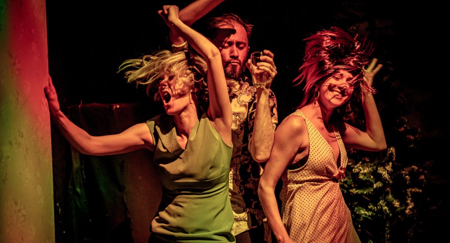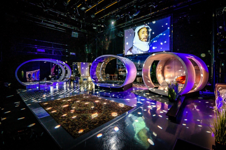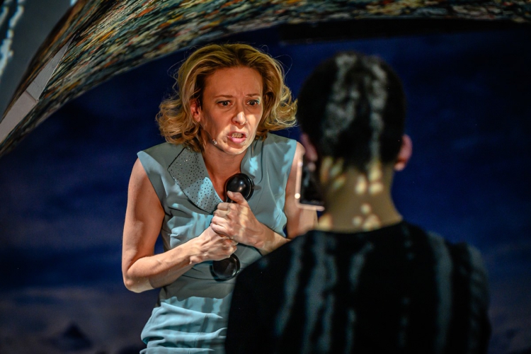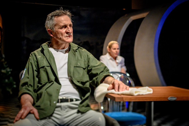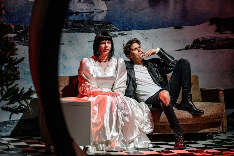 Miłosne nieporozumienia pary wampirów ciągną się przez kilka wieków aż do współczesności, historia pary agentów rozgrywa się w wiekach XX i XXI, a „teraźniejsze” wydarzenia przedzielane są retrospekcjami z młodości postaci. Romans wróżki i miliardera podróżującego w kosmos, a także losy męża w śpiączce i jego żony także przypadają na ostatnie dwa wieki. Wszystkie wydarzenia udaje się przedstawiać w jednej przestrzeni, w dużej mierze za sprawą przemyślanego ruchu scenicznego (Alisa Makarenko), który wykorzystuje możliwości otwartej sceny i wszelkich jej zakamarków (ukryta z tyłu kanapa, boczny pokój), a także dzięki dynamice plastycznej poszczególnych elementów scenografii i precyzyjnemu oświetleniu. To ostatnie jest ważne, bo wydobywa postaci, niejako z niebytu, na pierwszy czy drugi plan. Efektownie wypadł też rząd pralek z podświetlanymi otworami, z których w zaskakujących momentach wyłaniają się postaci, na przykład miliarder (Jakub Kotyński), dopowiadając fragmenty dialogu
