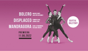 Tryptyk baletowy: „Displaced” – choreografia Joshua Legge, „Mandragora” – choreografia Grzegorz Brożek, „Bolero” – choreografia Jacek Przybyłowicz. Kierownictwo muzyczne: Adam Banaszak. Premiera 11 czerwca 2022 r. w Teatrze Wielkim w Łodzi