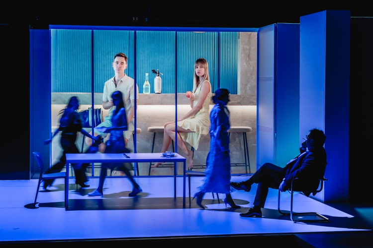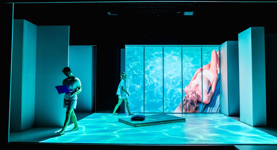 Na ścianie w głębi pomieszczenia prezentowane są wizualizacje (Hektor Werios), inspirowane malarstwem Davida Hockneya, które zmieniają się w zależności od tego, jaka para bohaterów aktualnie znajduje się na scenie. Oprócz żywych obrazów istotnym elementem aranżacji przestrzeni jest basen zasugerowany szczególnie zaprojektowanym światłem. Wizualizacje, które pokazują jedną z par nad basenem przy wilii, odsyłają do filmu Jacques’a Deraya „Basen” z 1969 roku z udziałem Alaina Delona i Romy Schneider, opowiadającego o parze kochanków z tajemnicami. Inspiracje materią filmową są w spektaklu bardzo wyraźne. Dramat autorstwa Salomé Lelouch można potraktować jako kontrapunkt wobec twórczości jej ojca, a szczególnie jego filmu „Kobieta i mężczyzna”.