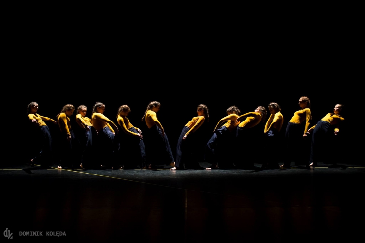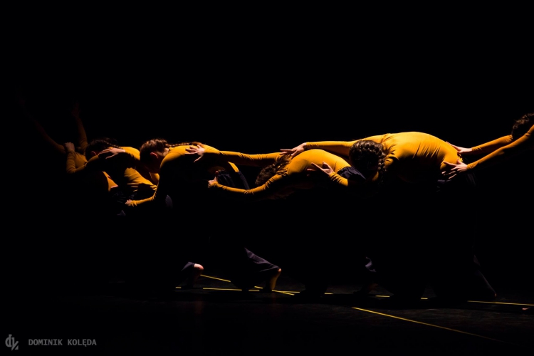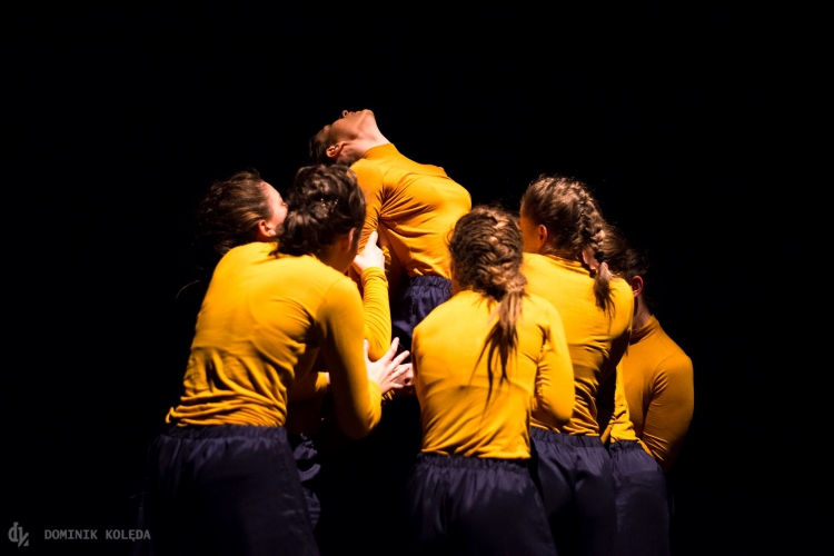 Zobaczyliśmy spektakl pozbawiony tradycyjnej fabuły i zindywidualizowanych postaci. Jeśli próbować układać go w opowieść, to byłaby to historia o uniwersalnych mechanizmach rządzących procesem grupowym. Począwszy od zbliżania się do siebie nawzajem i badania granic, przez oddalanie i powracanie jak po niewidzialnej nitce, aż po rozpad i wchodzenie w kolejne interakcje, których przebiegu i dynamiki nie sposób przewidzieć. Widzieliśmy proces wyłaniania się liderki/liderek, stawania po czyjejś stronie, nauki silnego – z tupnięciem nogą – stawania po swojej stronie. Za pomocą techniki kontakt – improwizacji pokazano nawiązywanie relacji, od samotności i indywidualizmu, przez łączenie się w pary, grupki wzajemnej adoracji, wreszcie w duże grupy, potem rozpad tych grup, by za chwilę cały proces zaczął się od nowa. Tanecznym ruchom, odzwierciedlającym próby wtopienia się w tłum, w sukurs szły jednakowe fryzury i kostiumy dwunastu tancerek, co podkreślało jedność grupy, ale też unaoczniało fakt, że nie nigdy nie możemy być identyczni. Nawet jeśli aktorki założą takie same kostiumy, każda wygląda w nich inaczej – inna jest jej fizyczność, inna energia i emocje, nawet, gdy tancerki starają się wykonać identyczny ruch, w tym samym rytmie, w tym samym momencie.