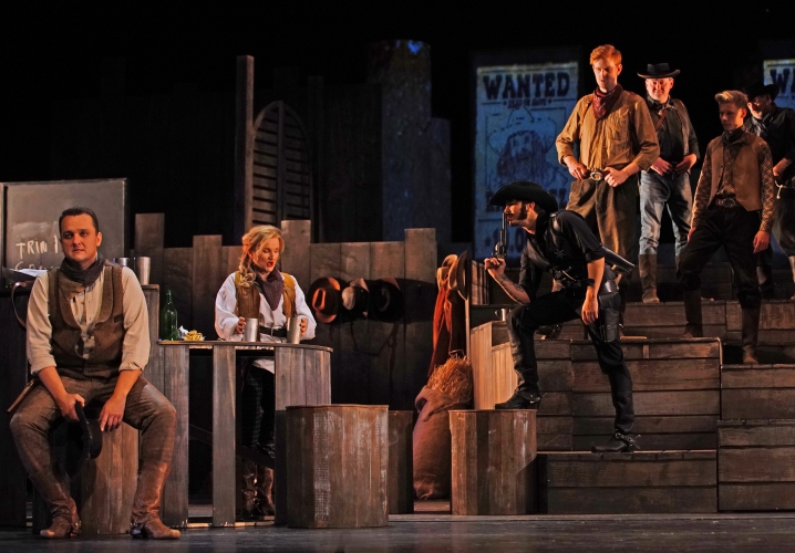 RECENZJA. Krajobrazy dalekiej Kalifornii, gdzieniegdzie przyprószone śniegiem, brawura poszukiwaczy złota i oczywiście wątek miłosny – to lepsze od serwowanych w grudniu komedii romantycznych. W ostatni weekend przed Bożym Narodzeniem warto więc było wybrać nie kino, a teatr: w łódzkiej operze pokazano premierę „Dziewczyny z Dzikiego Zachodu” Giacoma Pucciniego. Zresztą tym razem opera ma z filmem sporo wspólnego. Pisze Magdalena Sasin.