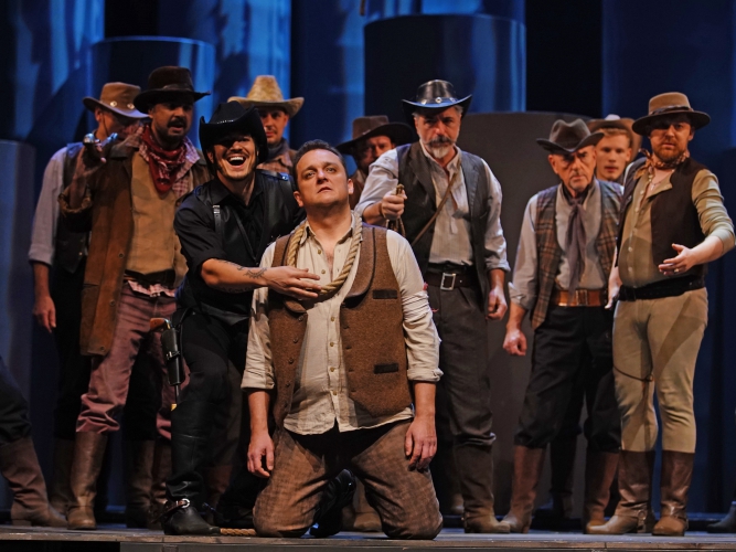 Od strony wokalnej najbardziej jednak zachwycił Dominik Sutowicz – w roli bandyty Dicka Johnsona, który skradł serce Minnie. Jego głos o ciepłym, aksamitnym brzmieniu robił wrażenie zwłaszcza w najpiękniejszej arii całej opery, która przeznaczona jest wcale nie dla tytułowej Dziewczyny, ale dla tenora: „Ch’ella mi creda libero e lontano” z trzeciego aktu. Piękno kantyleny i siła muzycznego wyrazu nasuwają skojarzenia z zachwycającymi taktami „Cyganerii” i „Turandot”. Przeciwnikiem Johnsona jest szeryf Jack Rance –w tej roli wystąpił nad wyraz autentyczny aktorsko, odrobinę mniej przekonujący wokalnie Viktor Yankovskyi.